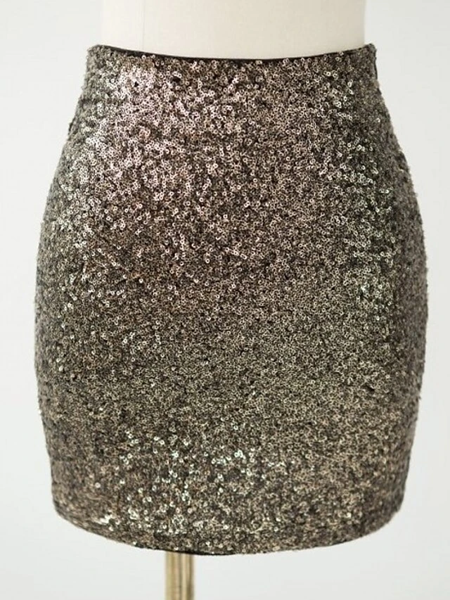 Women’s Skirt Work Skirts Mini Silver Black Gold Skirts All Seasons Sequins Fashion Sparkle Sparkle & Shine Xmas Party Christmas S M L