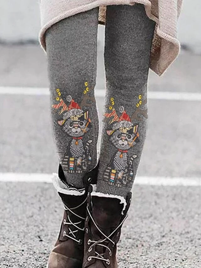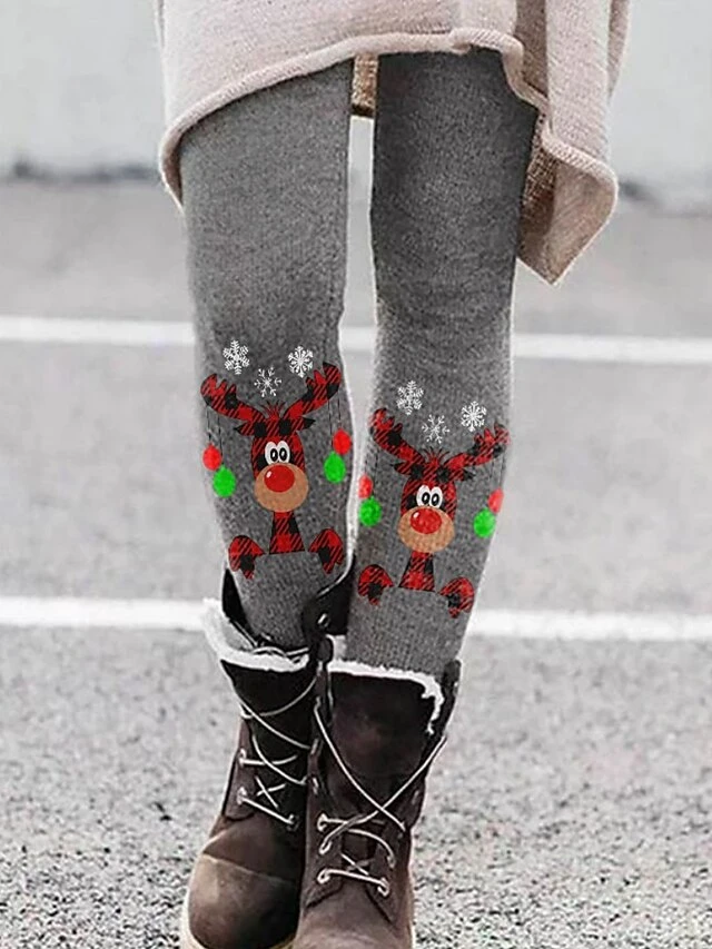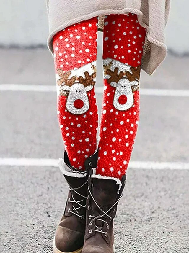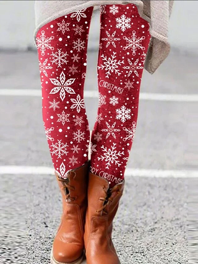 Women’s Christmas Leggings Full Length Active Fashion Christmas Daily White Green S XL Fall & Winter