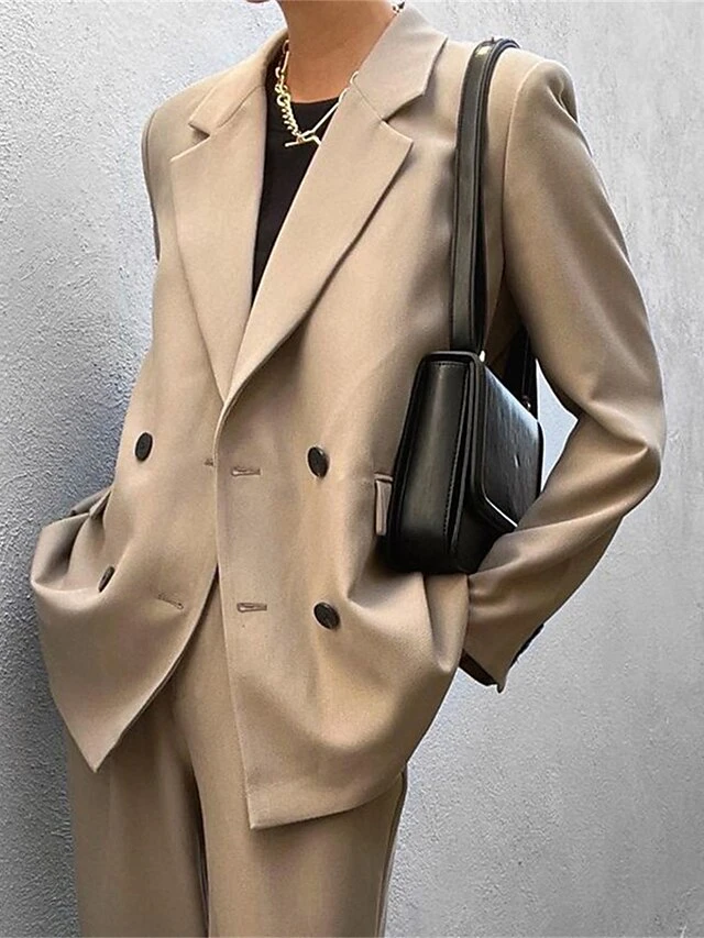 Women’s Suits Blazer Office Christmas Work Xmas Spring Fall Coat Regular Fit Thermal Warm Windproof Breathable Stylish Contemporary Modern Style Jacket Long Sleeve Solid Color With Pockets Oversize