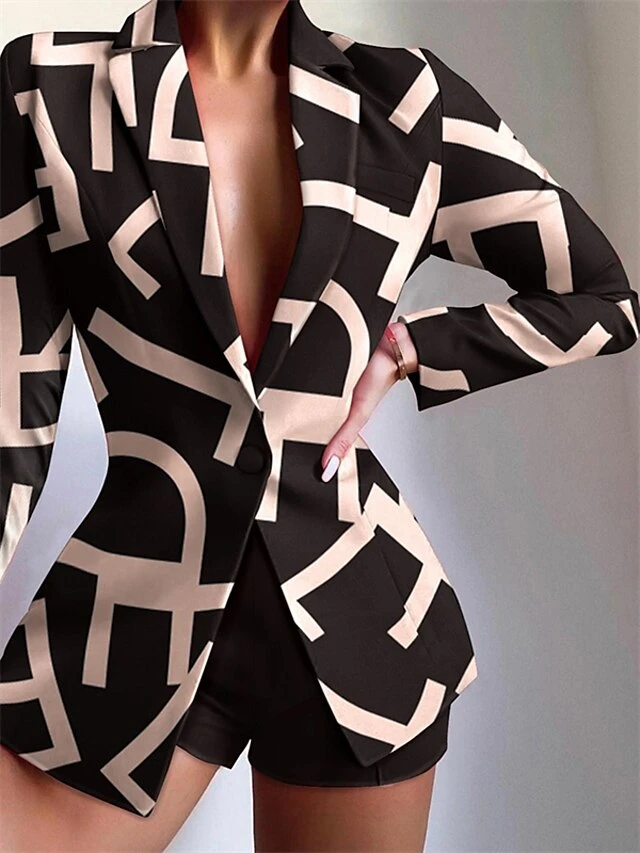 Women’s Suits Windproof Warm Outdoor Christmas Street Daily Button Print Single Breasted Turndown Fashion Elegant Casual Daily Street Xmas Print Regular Fit Outerwear Long Sleeve Fall Winter Blue