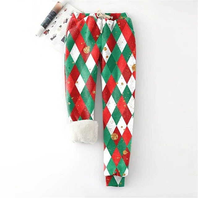 Women’s Sweatpants Jogging PantsGreen Red Green / Black Hip Hop Athleisure Christmas Weekend Xmas Side Pockets Full Length Comfort Polka Dot S M L XL XXL