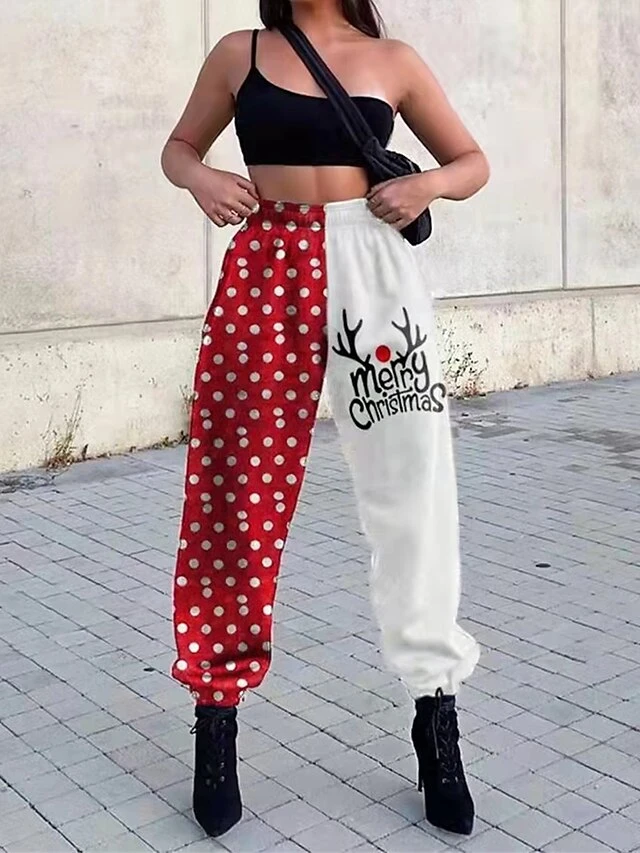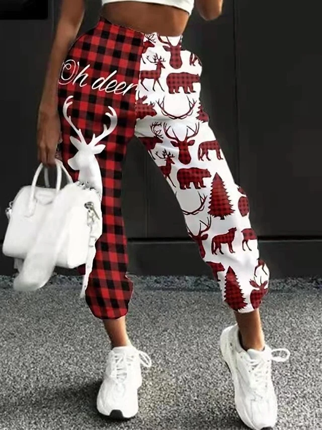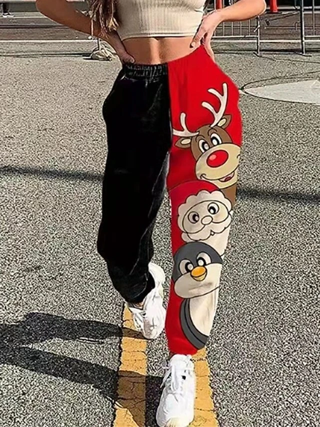 Women’s Sweatpants Pants Trousers Harem Pants Full Length Active Vacation Outdoor Christmas Pure Black + Red Bottom Deer Moon Shaped Santa Claus S M Fall Winter
