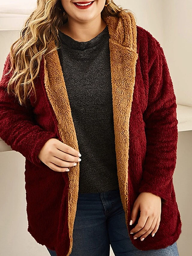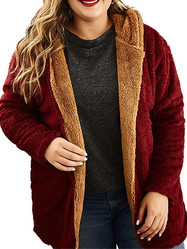 Women’s Teddy Coat Hoodie Jacket Windproof Warm Christmas Street Xmas Sport Daily Wear Patchwork With Pockets Open Front Hoodie Daily Plush Color Block Regular Fit Outerwear Long Sleeve Fall