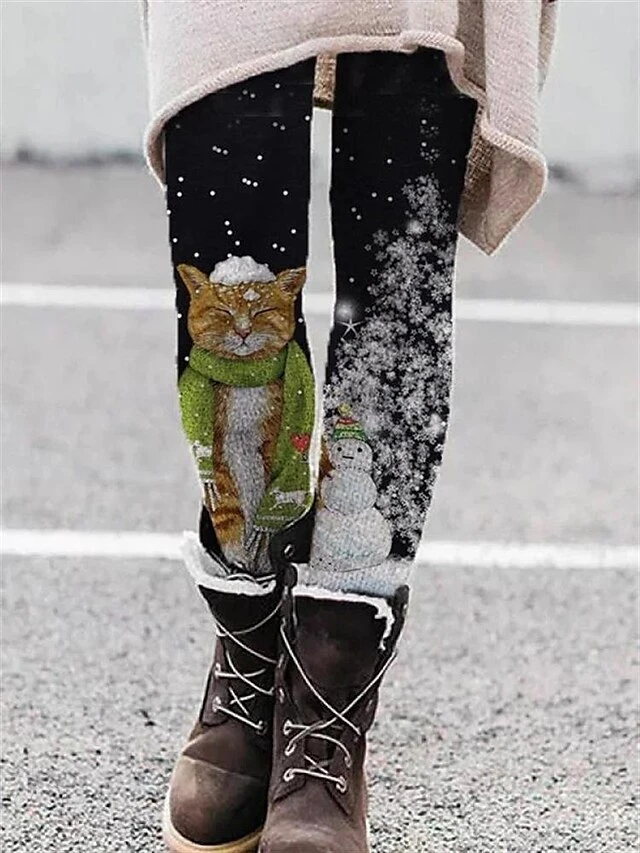 Women’s Tights Leggings Black Pink Black / Red Fashion Christmas Weekend Xmas Full Length Tummy Control Cat S M L XL XXL