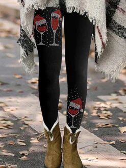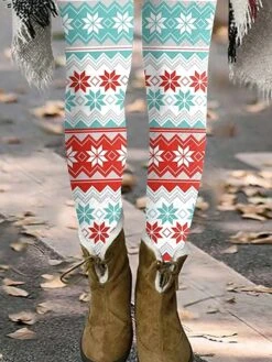 Women’s Tights Leggings Blue Dark Blue Brown Mid Waist Fashion Christmas Gifts Casual Print Micro-elastic Full Length Comfort Santa Claus S M L XL XXL / Slim