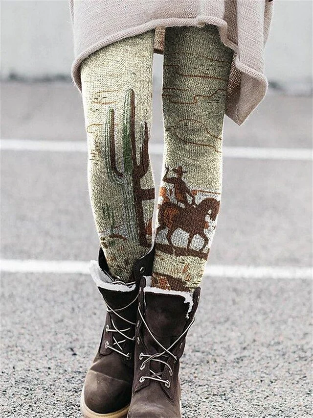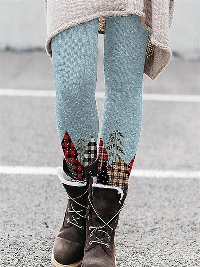 Women’s Tights Leggings Dark Khaki Sky Blue Apricot Christmas Casual Daily Weekend Xmas Full Length Tummy Control Graphic S M L XL 2XL