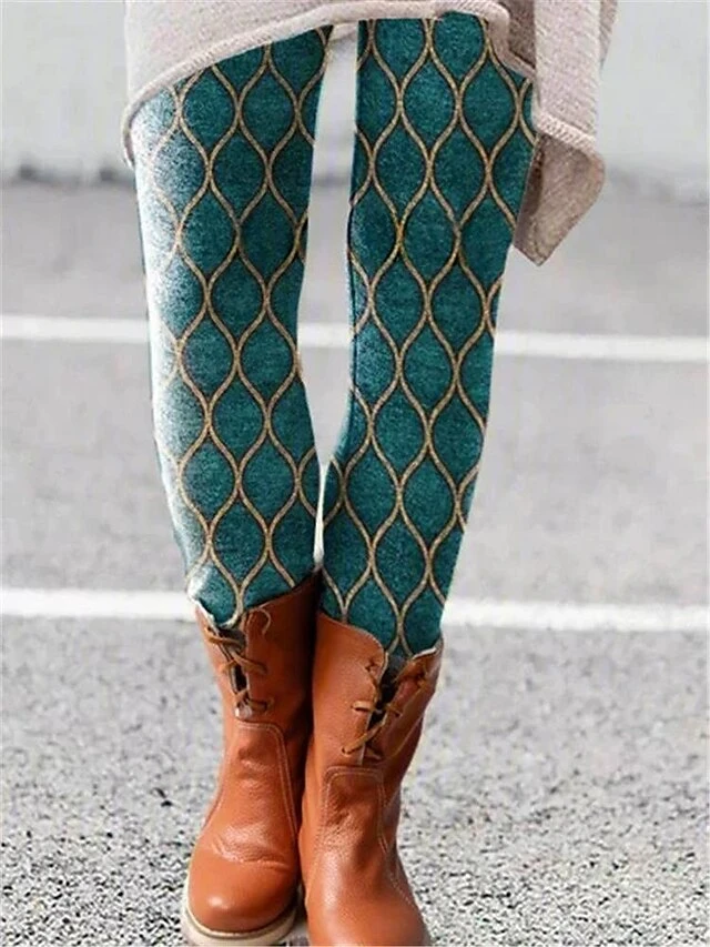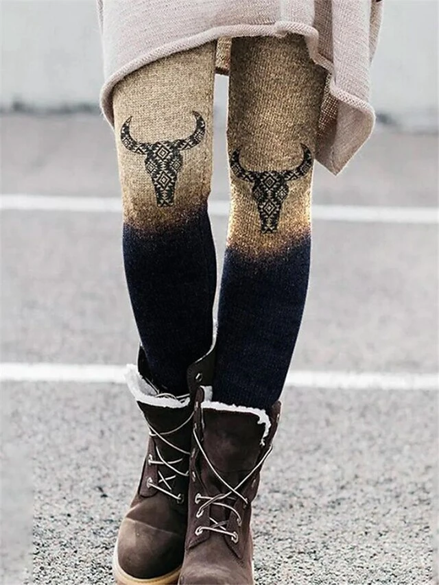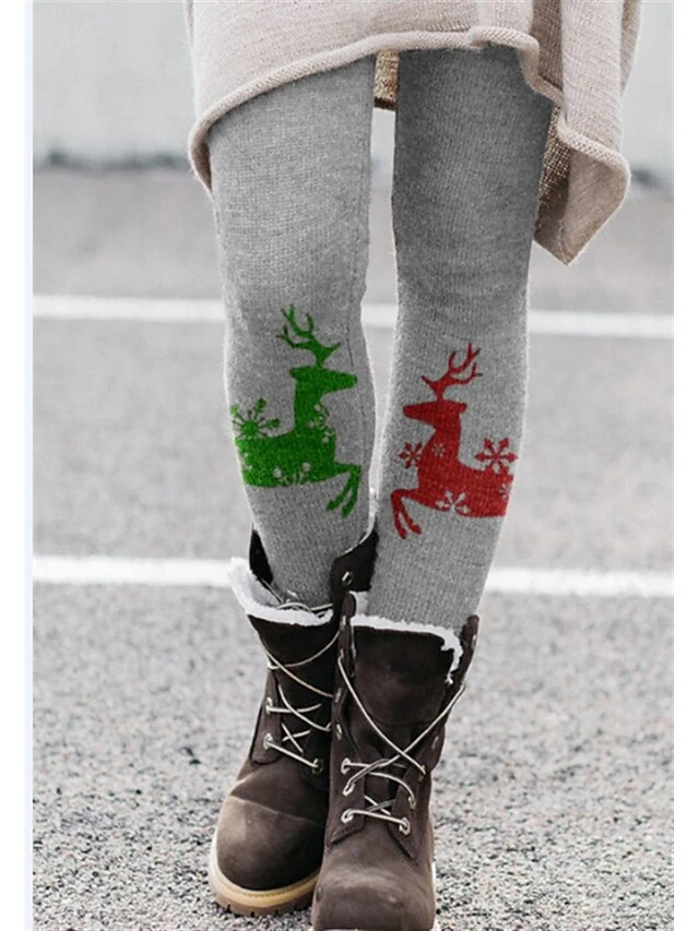 Women’s Tights Leggings Full Length Print Stretchy Fashion Christmas Weekend Dark Grey Black S M