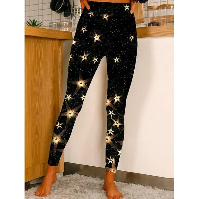 Women’s Tights Leggings Print Butterfly Star Snowflake Tummy Control Butt Lift Ankle-Length Christmas Weekend Xmas Yoga Casual / Sporty Athleisure Skinny White / Black Mid Waist Micro-elastic