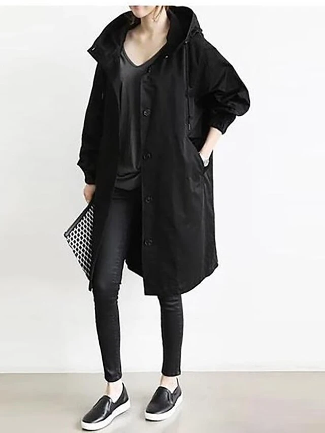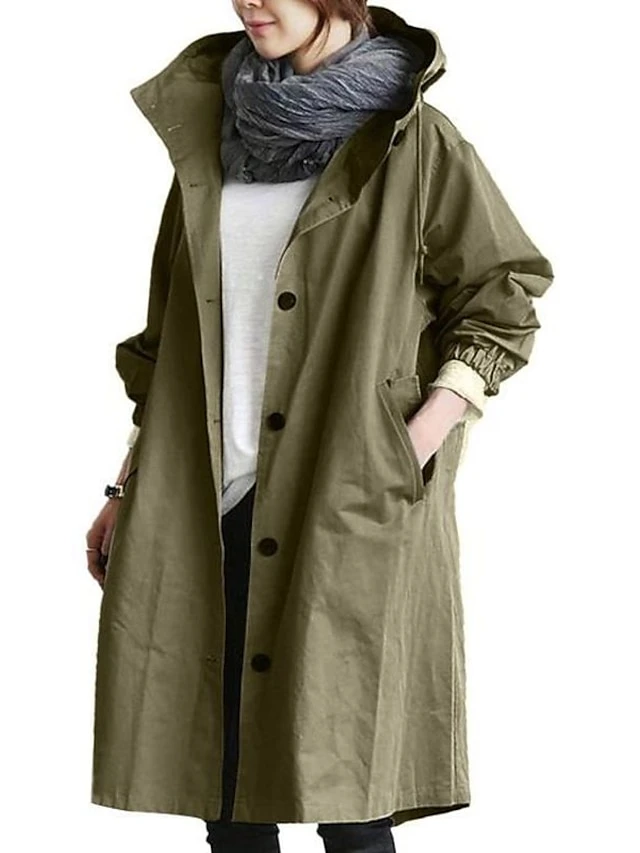 Women’s Trench Coat Fall Long Over Coat With Hood Christmas Party Wear With Belt Single Breasted Hoodied Jacket Valentine’s Day Loose Fit Waterproof Windproof Casual Jacket Long SleeveLight Blue Red