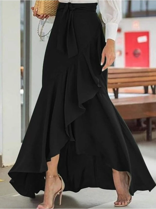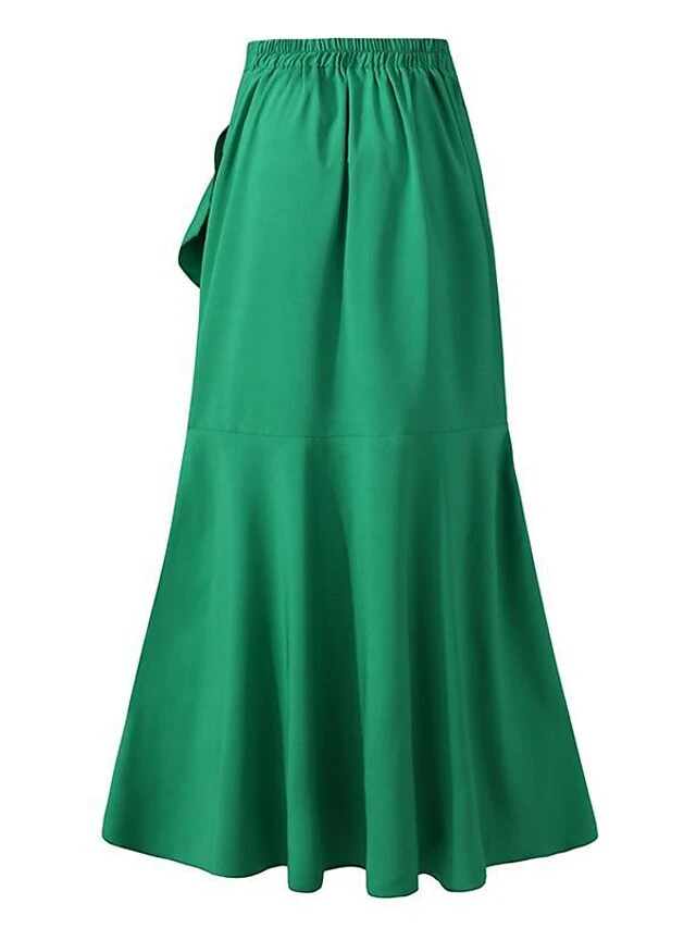 Women’s Trumpet / Mermaid Wrap Christmas Skirts Wine Black Green Skirts Ruffle Asymmetric Hem Vintage Elegant Office Party Street S M L