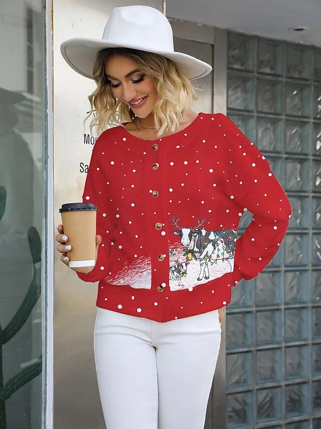 Women’s Ugly Christmas Crew Neck Sweater Cardigan Sweater JacketRibbed Knit Polyester Button Knitted Print Fall Winter Short Outdoor Xmas Holiday Daily Stylish Casual Long Sleeve Animal