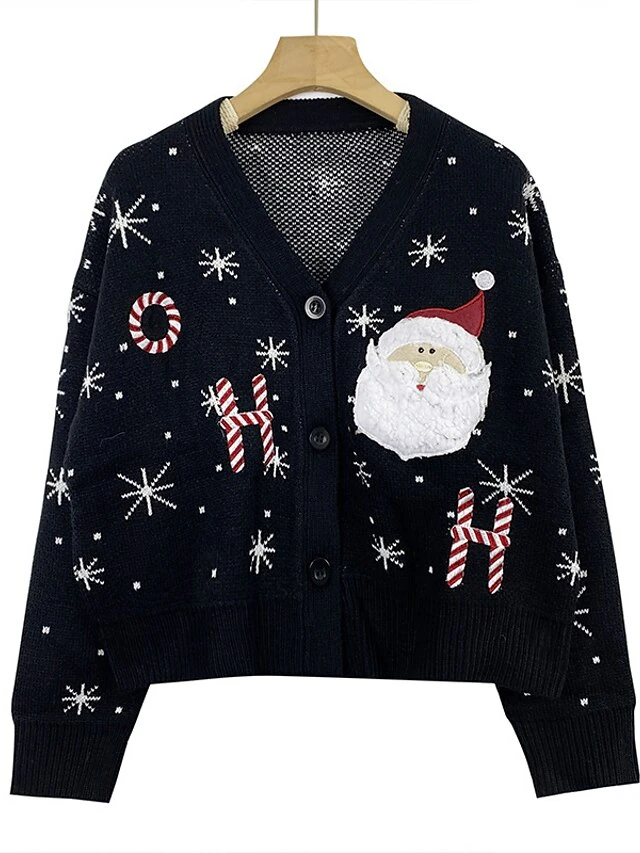 Women’s Ugly Christmas Sweater Cardigan Christmas Sweaters V Neck Ribbed Knit Polyester Knitted Print Fall Winter Short Outdoor Christmas Daily Stylish Casual Soft Long Sleeve Letter Santa Claus