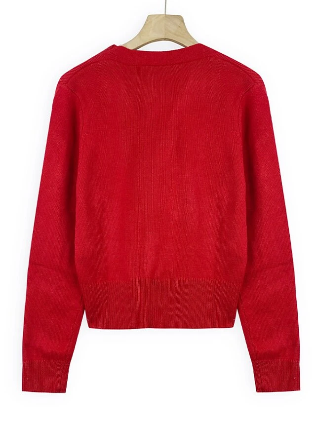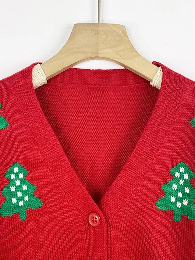 Women’s Ugly Christmas Sweater Cardigan Christmas Sweaters V Neck Ribbed Knit Polyester Patchwork Fall Winter Short Outdoor Christmas Daily Stylish Casual Soft Long Sleeve Christmas Tree Red S M L