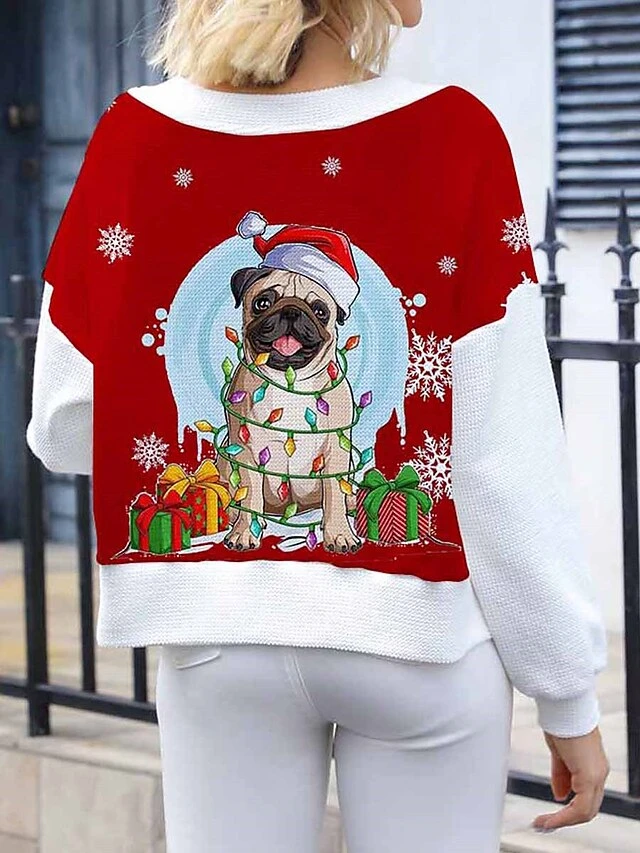 Women’s Ugly Christmas Sweater Cardigan Sweater Jacket Crew Neck Ribbed Knit Polyester Button Knitted Print Fall Winter Short Outdoor Christmas Holiday Daily Stylish Casual Long Sleeve Animal Santa