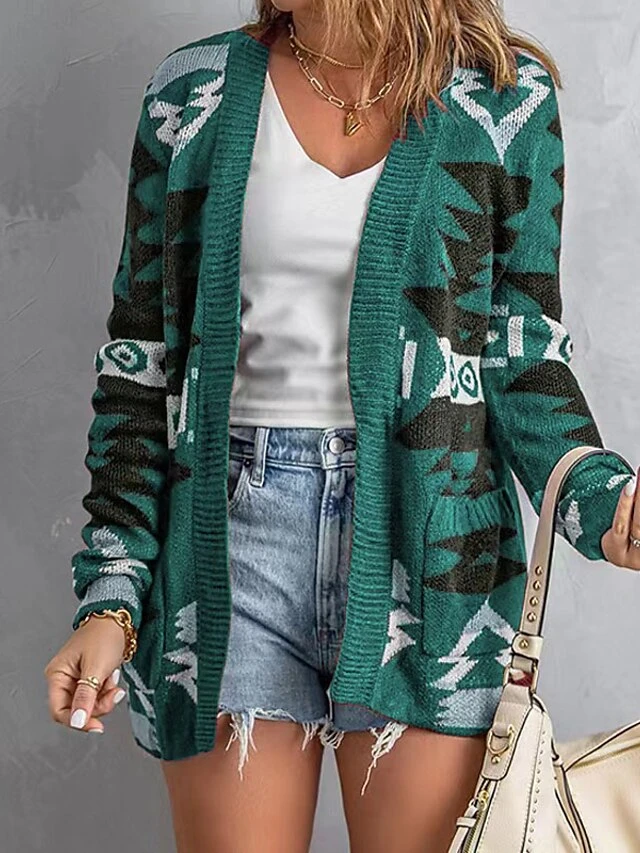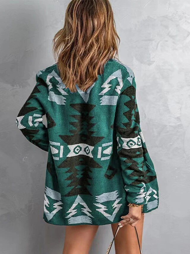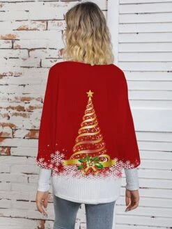 Women’s Ugly Christmas Sweater Pullover Sweater Jumper Cardigan Sweater Cowl Crochet Knit Cotton Knitted Thin Print Fall Winter Tunic Xmas Holiday Going Out Stylish Casual Long Sleeve Floral Red