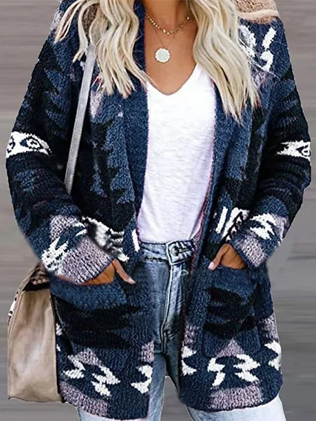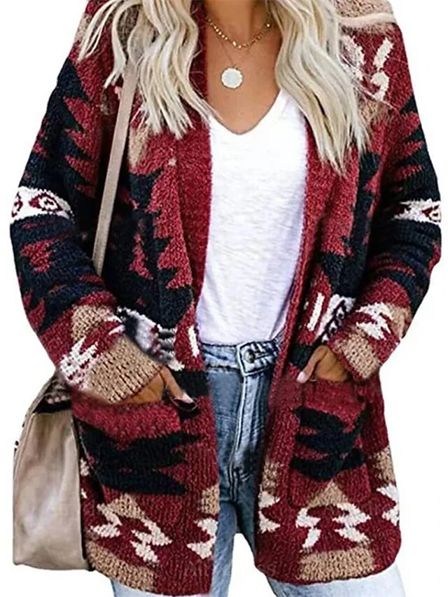 Women’s Ugly Christmas Sweater Pullover Sweater Jumper Cardigan Sweater Shirt Collar Ribbed Knit Acrylic Pocket Knitted Fall Winter Outdoor Xmas Daily Stylish Casual Soft Long Sleeve Christmas