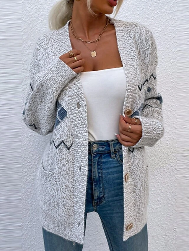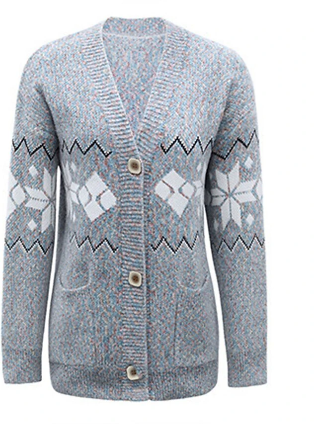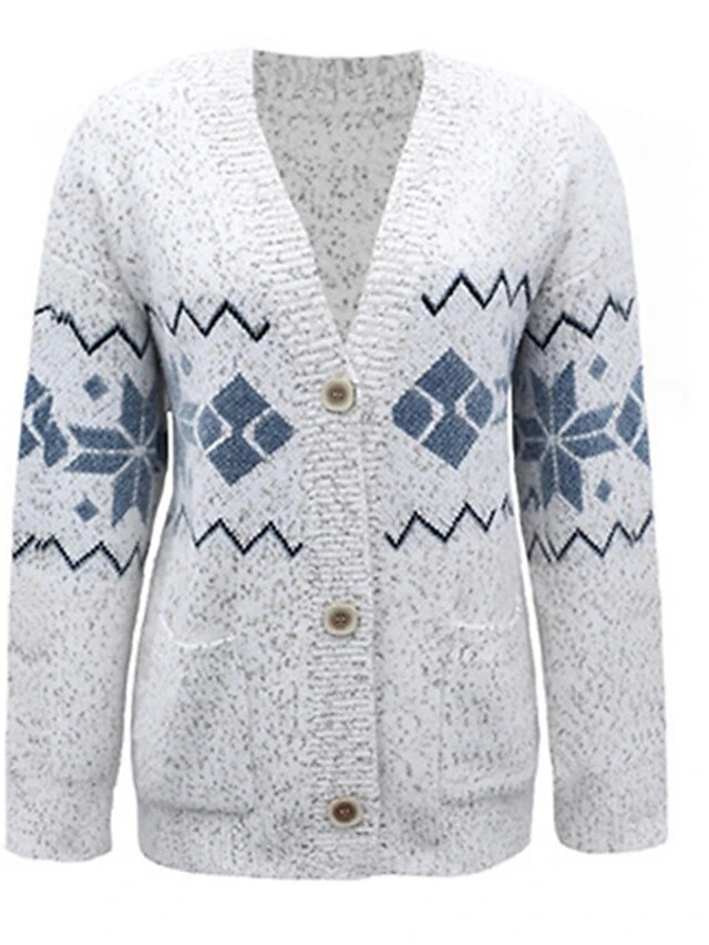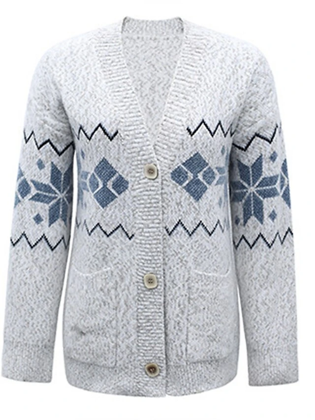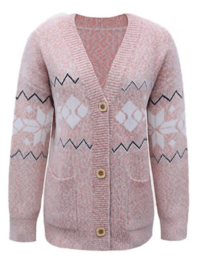 Women’s Ugly Christmas Sweater Pullover Sweater Jumper Cardigan Sweater V Neck Ribbed Knit Polyester Button Pocket Knitted Fall Winter Outdoor Xmas Holiday Stylish Casual Soft Long Sleeve