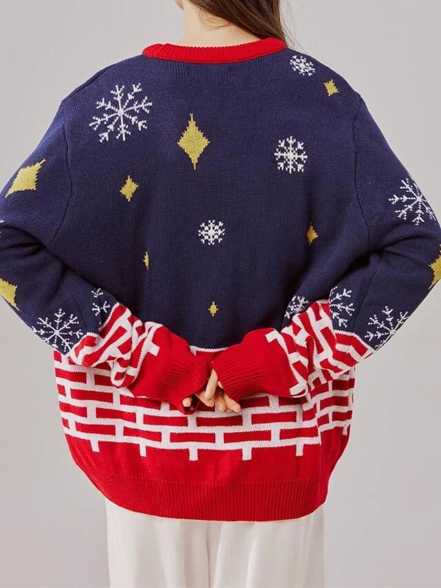 Women’s Ugly Christmas Sweater Pullover Sweater Jumper Christmas Sweaters Crew Neck Ribbed Knit Acrylic Embroidered Knitted Fall Winter Regular Outdoor Christmas Holiday Stylish Casual Soft Long