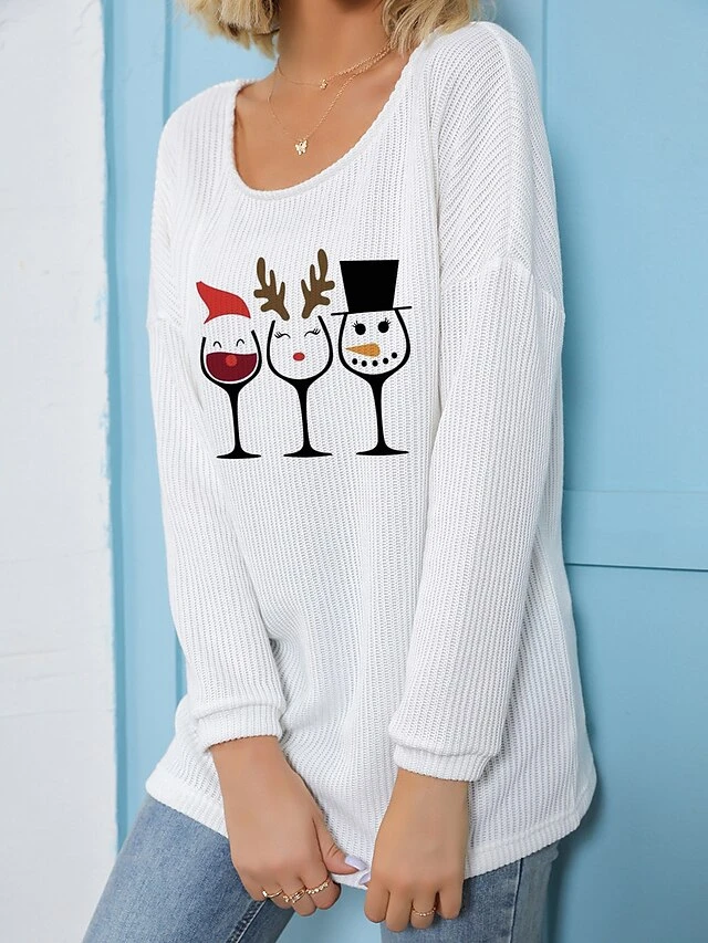 Women’s Ugly Christmas Sweater Pullover Sweater Jumper Christmas Sweaters Crew Neck Ribbed Knit Acrylic Embroidered Knitted Fall Winter Regular Outdoor Xmas Daily Stylish Casual Soft Long Sleeve