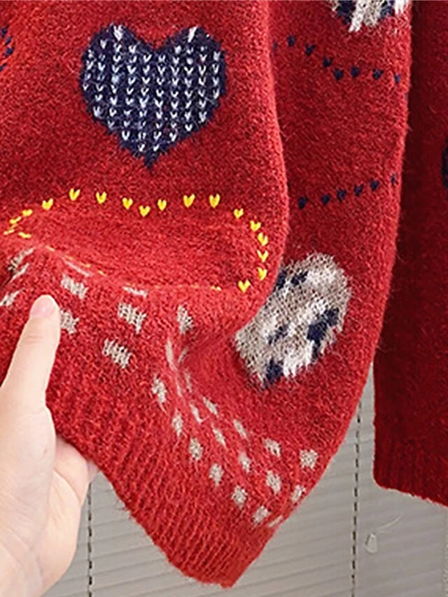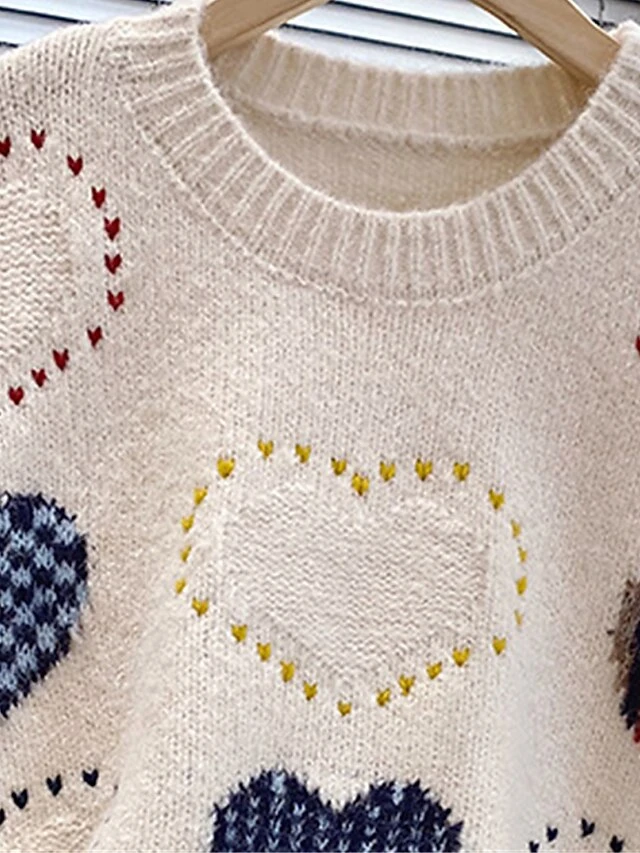 Women’s Ugly Christmas Sweater Pullover Sweater Jumper Christmas Sweaters Crew Neck Ribbed Knit Acrylic Knitted Fall Winter Regular Outdoor Christmas Daily Fashion Casual Soft Long Sleeve Heart White