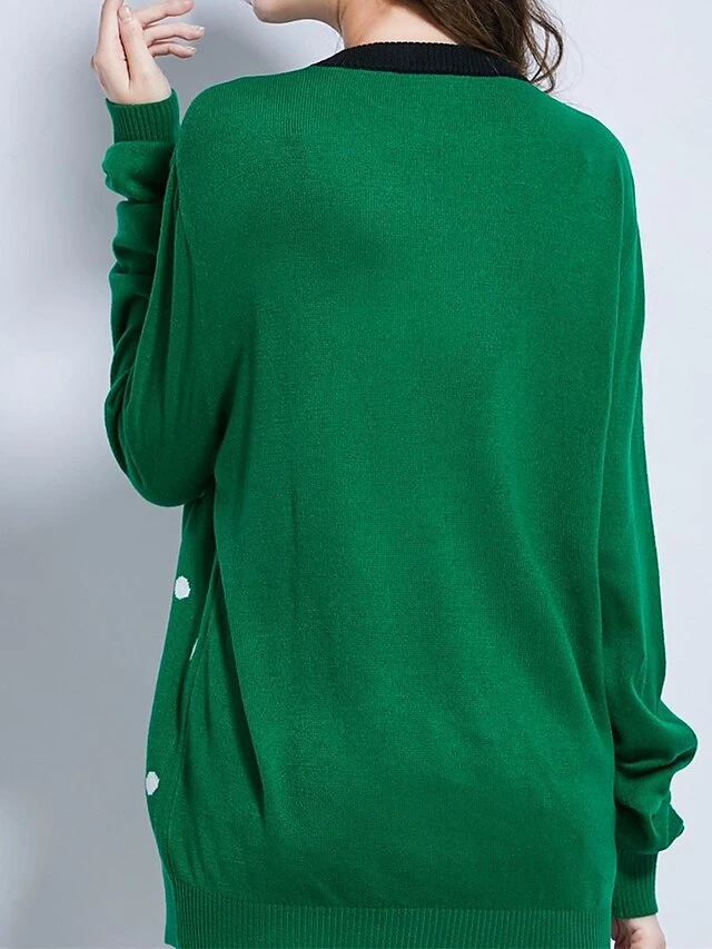 Women’s Ugly Christmas Sweater Pullover Sweater Jumper Christmas Sweaters Crew Neck Ribbed Knit Acrylic Knitted Fall Winter Regular Outdoor Christmas Daily Stylish Casual Soft Long Sleeve Polka Dot