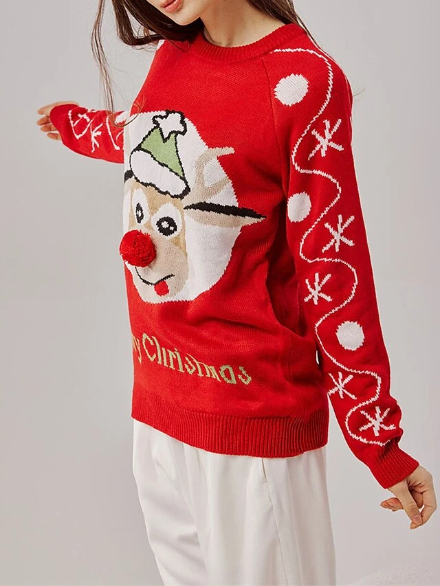 Women’s Ugly Christmas Sweater Pullover Sweater Jumper Christmas Sweaters Crew Neck Ribbed Knit Acrylic Knitted Fall Winter Regular Outdoor Xmas Daily Stylish Casual Soft Long Sleeve Polka Dot
