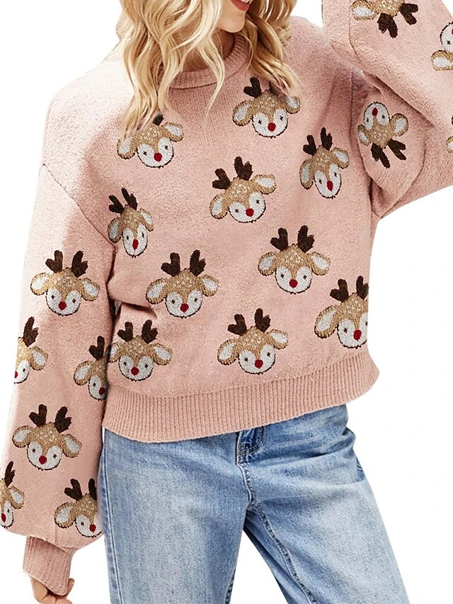 Women’s Ugly Christmas Sweater Pullover Sweater Jumper Christmas Sweaters Crew Neck Ribbed Knit Polyester Knitted Fall Winter Regular Outdoor Christmas Daily Fashion Casual Soft Long Sleeve Santa