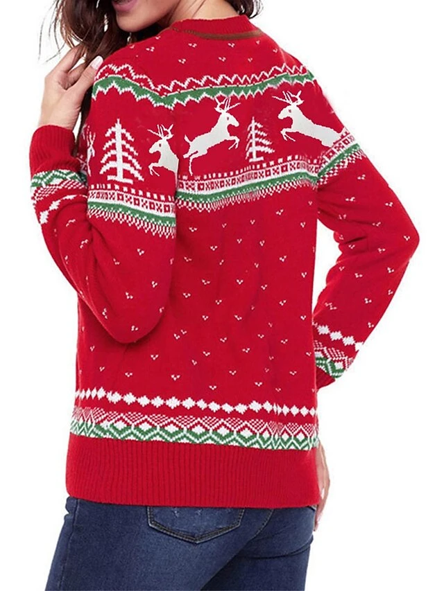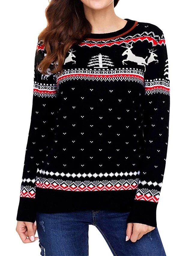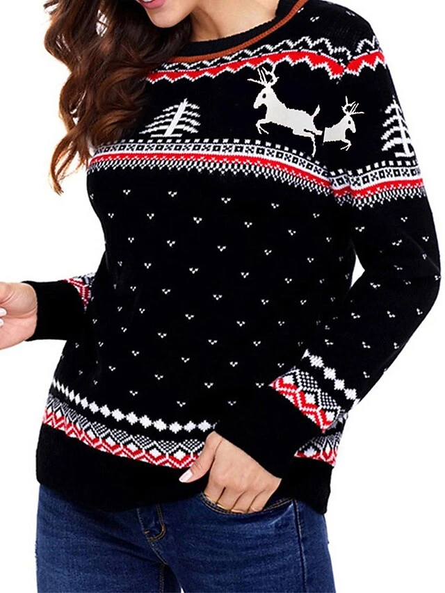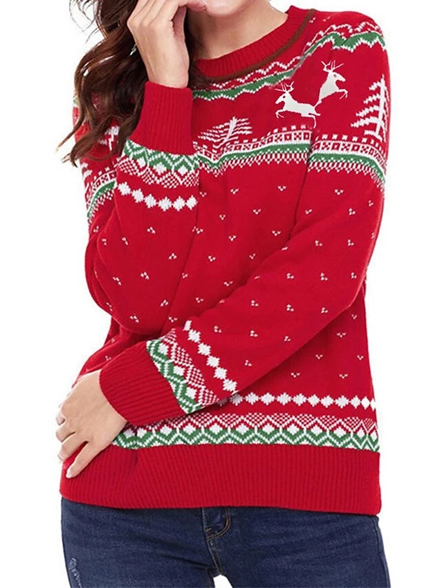 Women’s Ugly Christmas Sweater Pullover Sweater Jumper Christmas Sweaters Crew Neck Ribbed Knit Polyester Knitted Fall Winter Regular Outdoor Christmas Daily Stylish Casual Soft Long Sleeve Elk