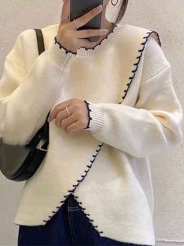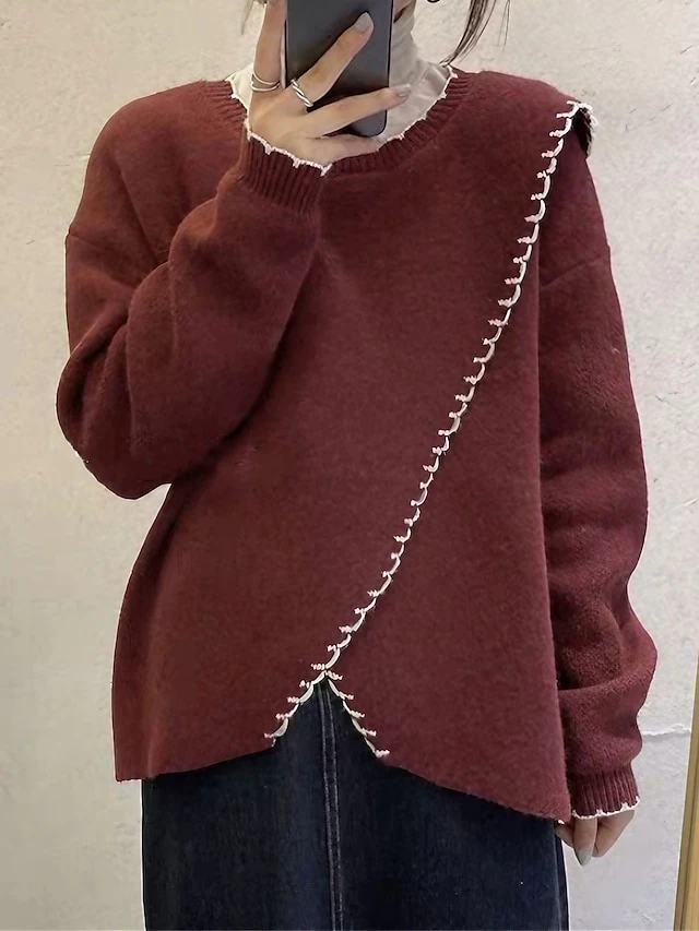 Women’s Ugly Christmas Sweater Pullover Sweater Jumper Christmas Sweaters Crew Neck Ribbed Knit Polyester Knitted Fall Winter Regular Outdoor Christmas Daily Stylish Casual Soft Long Sleeve Solid