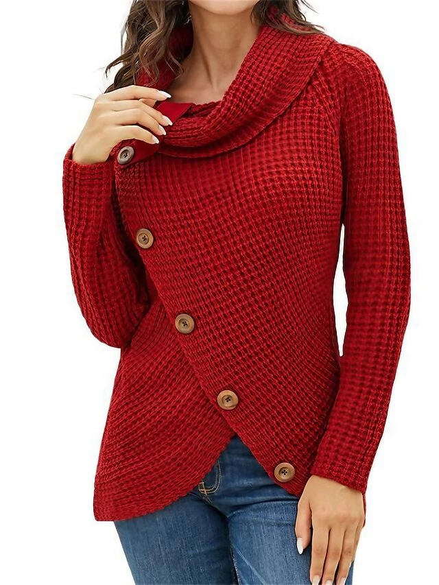 Women’s Ugly Christmas Sweater Pullover Sweater Jumper Christmas Sweaters Crew Neck Waffle Knit Acrylic Button Knitted Fall Winter Regular Outdoor Christmas Daily Fashion Casual Soft Long Sleeve