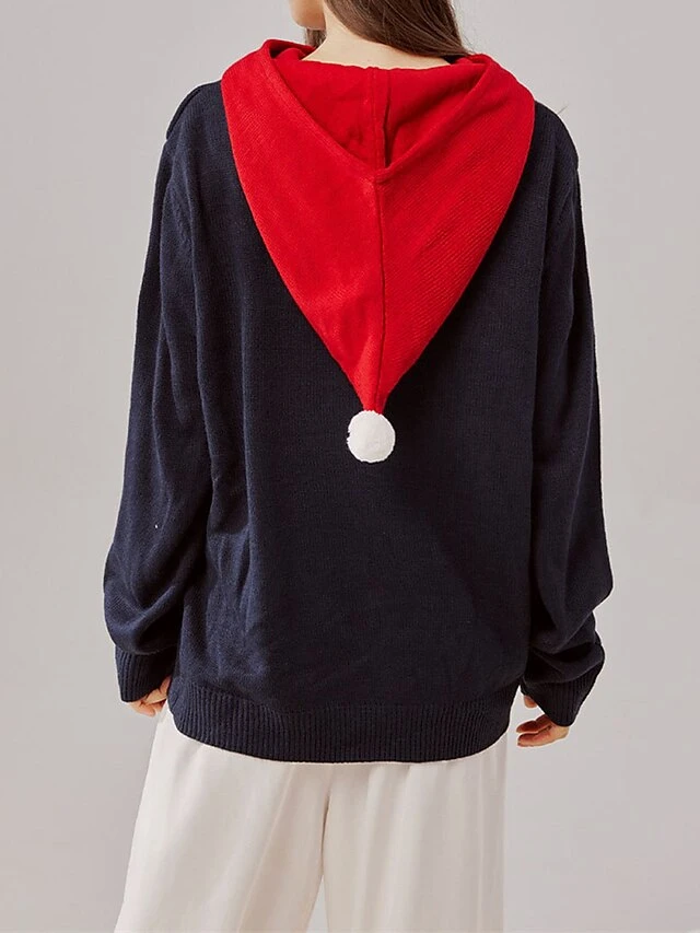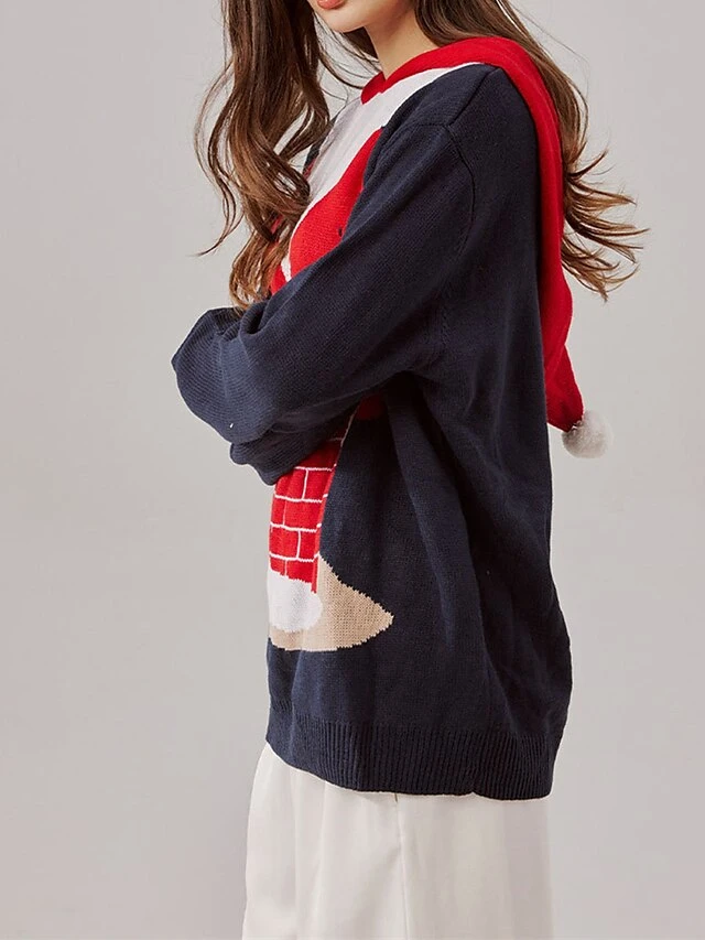 Women’s Ugly Christmas Sweater Pullover Sweater Jumper Christmas Sweaters Hooded Ribbed Knit Acrylic Patchwork Knitted Fall Winter Regular Outdoor Christmas Daily Stylish Casual Soft Long Sleeve