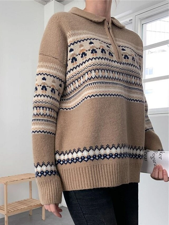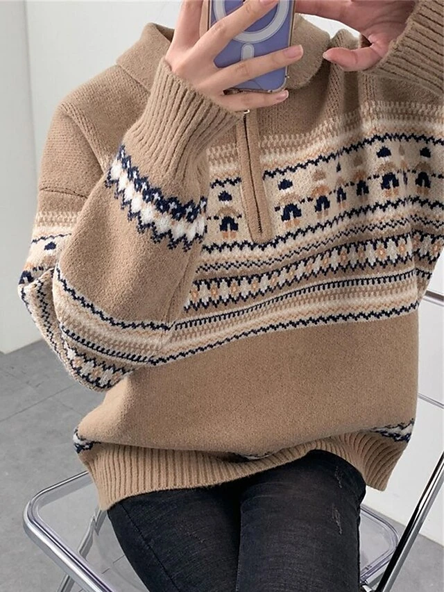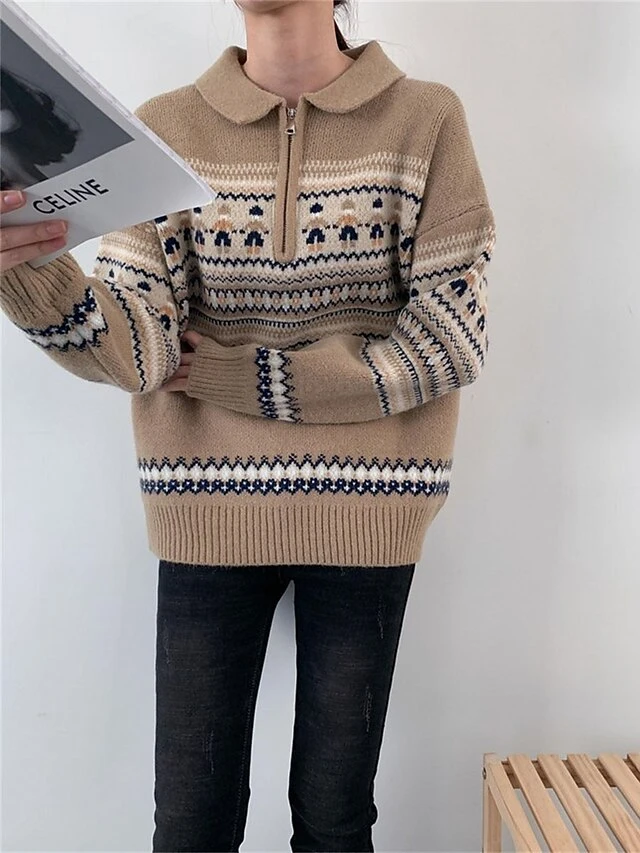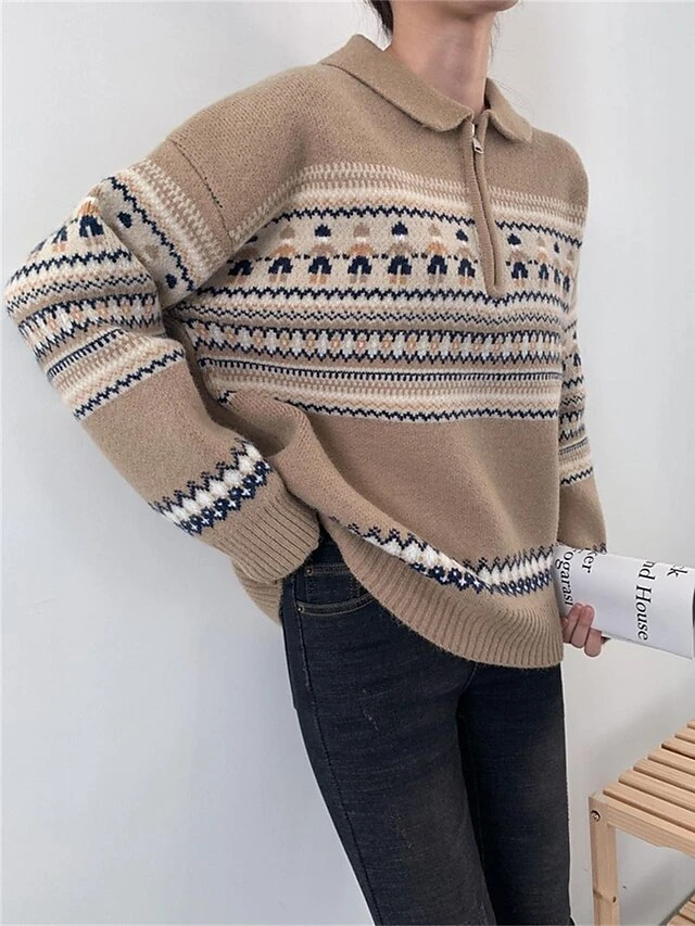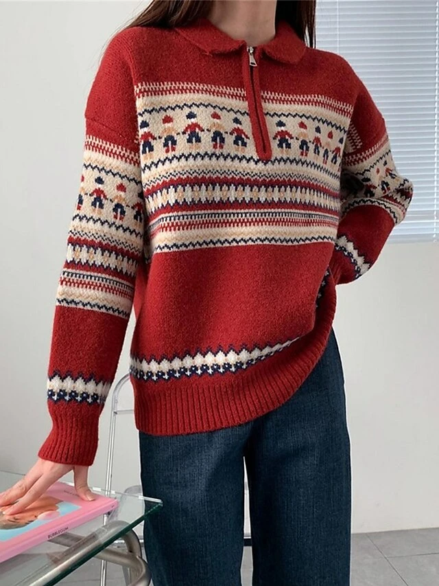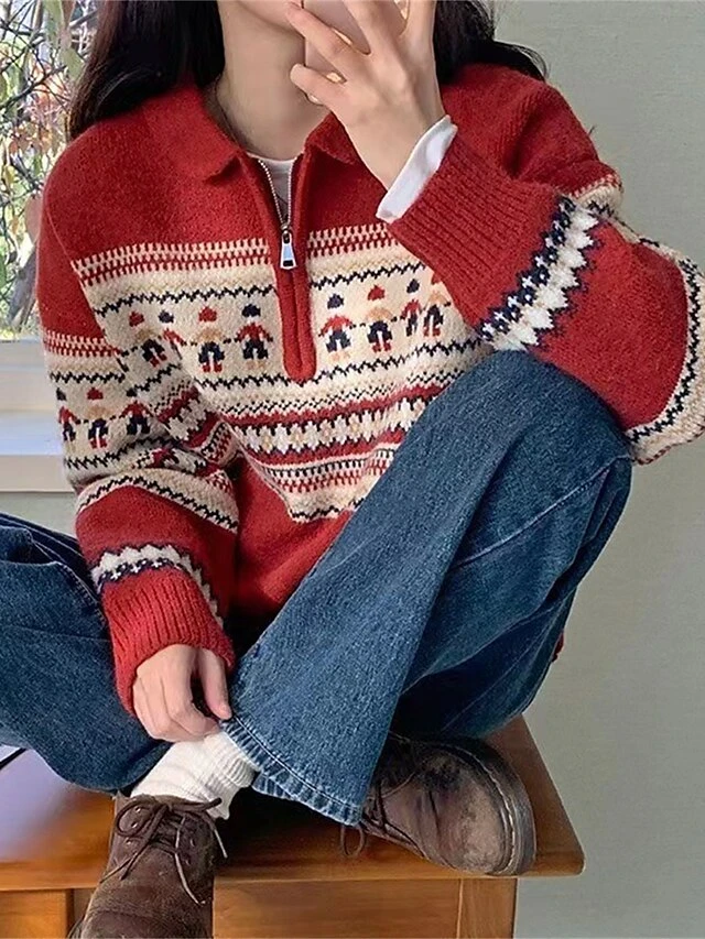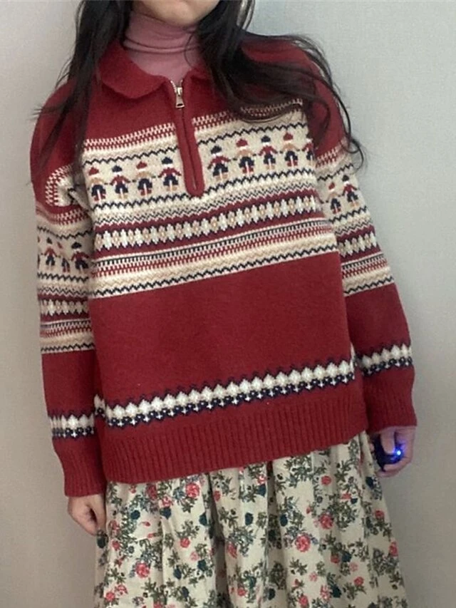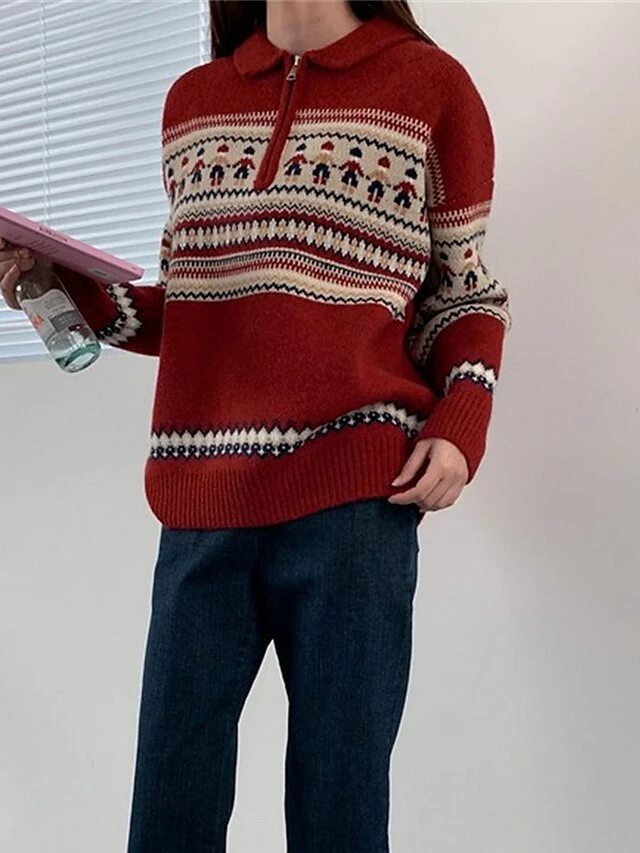 Women’s Ugly Christmas Sweater Pullover Sweater Jumper Christmas Sweaters Shirt Collar Ribbed Knit Polyester Knitted Print Fall Winter Regular Outdoor Christmas Daily Stylish Casual Soft Long Sleeve