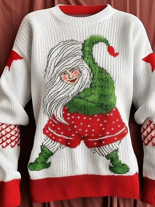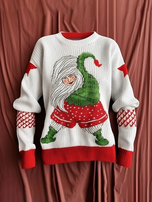 Women’s Ugly Christmas Sweater Pullover Sweater Jumper Christmas Sweaters V Neck Ribbed Knit Polyester Knitted Print Fall Winter Regular Outdoor Christmas Daily Fashion Casual Soft Long Sleeve