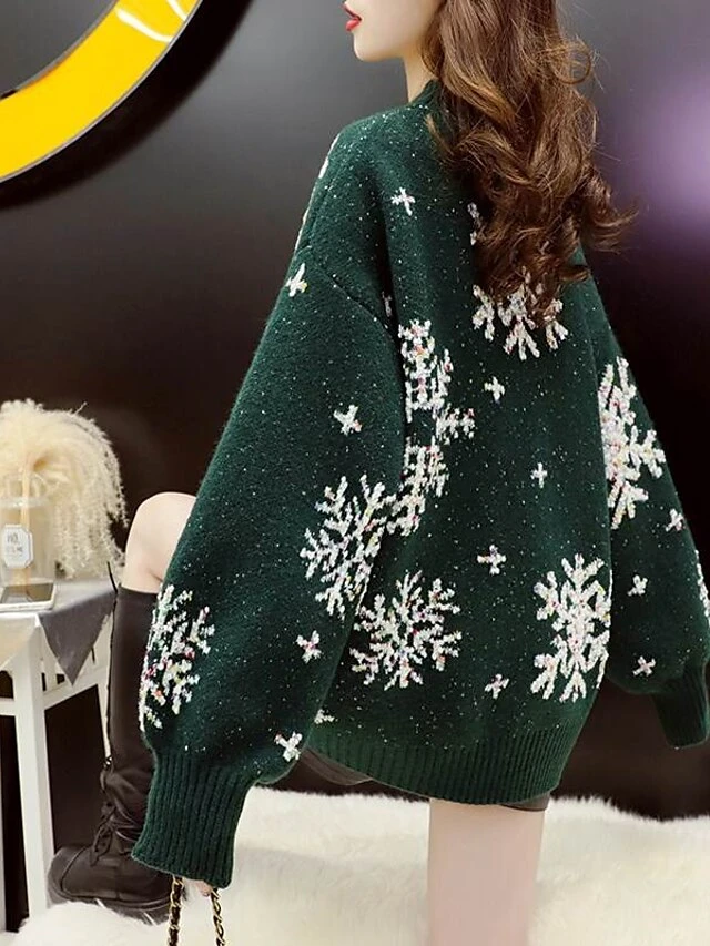 Women’s Ugly Christmas Sweater Pullover Sweater Jumper Crew Neck Crochet Knit Cotton Knitted Fall Winter Christmas Holiday Xmas Casual Long Sleeve Snowflake Black Red Green One-Size