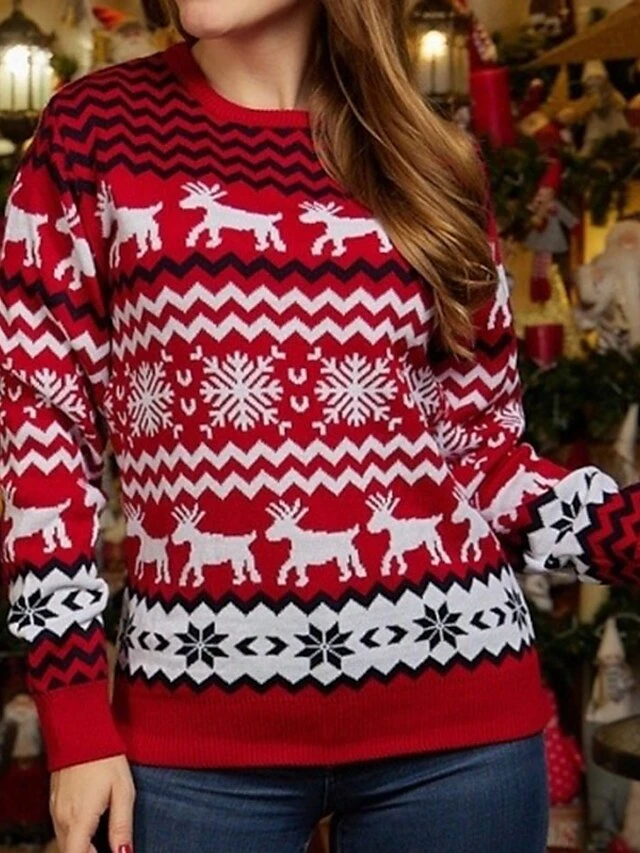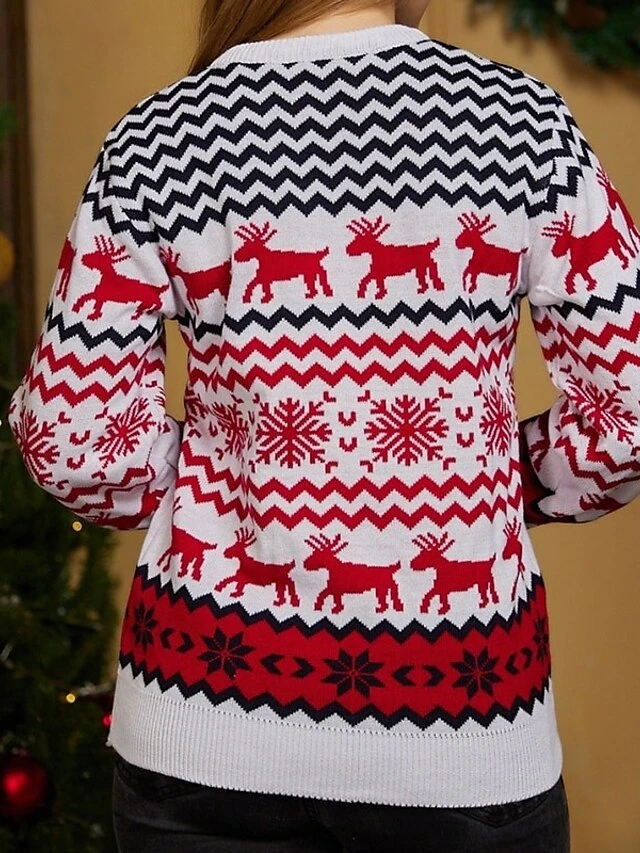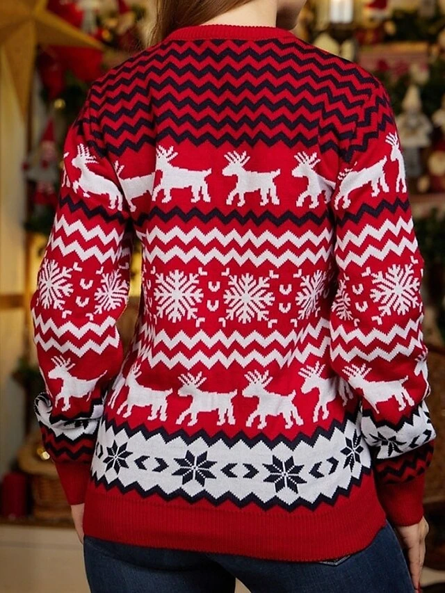 Women’s Ugly Christmas Sweater Pullover Sweater Jumper Crew Neck Crochet Knit Polyester Knitted Fall Winter Outdoor Xmas Daily Stylish Casual Soft Long Sleeve Snowflake White Red S M L