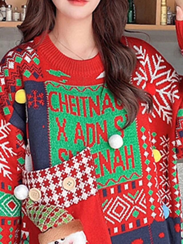 Women’s Ugly Christmas Sweater Pullover Sweater Jumper Crew Neck Ribbed Knit Acrylic Embroidered Pocket Knitted Fall Winter Outdoor Xmas Daily Stylish Casual Soft Long Sleeve Santa Claus Snowman
