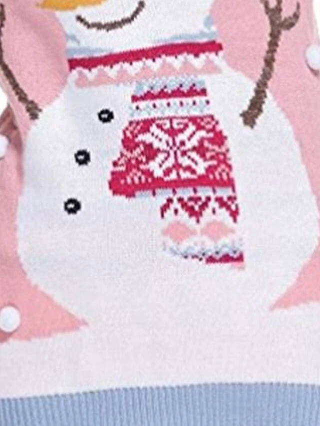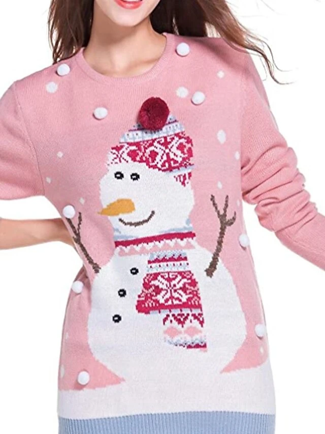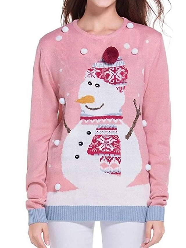 Women’s Ugly Christmas Sweater Pullover Sweater Jumper Crew Neck Ribbed Knit Acrylic Knitted Fall Winter Outdoor Xmas Daily Stylish Casual Soft Long Sleeve Snowman Snowflake Pink S M L