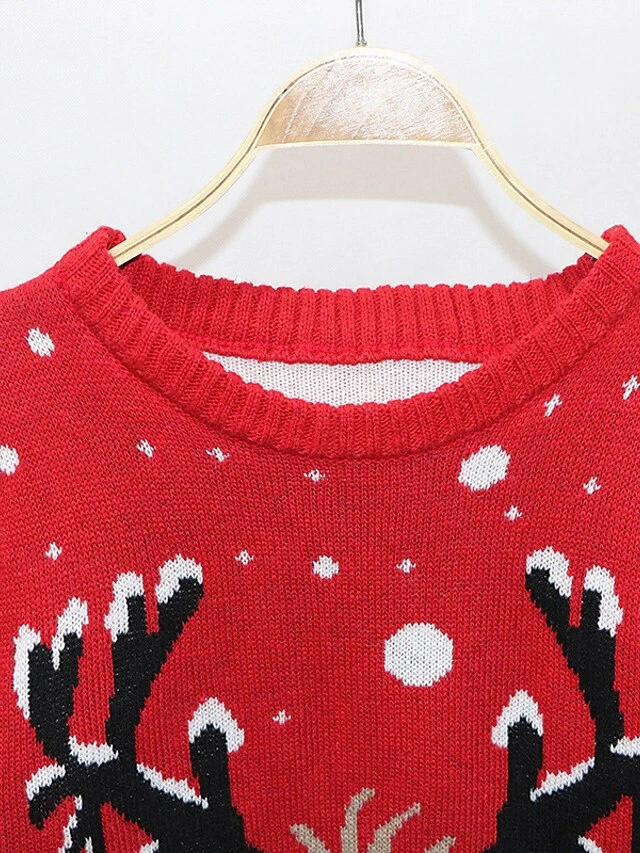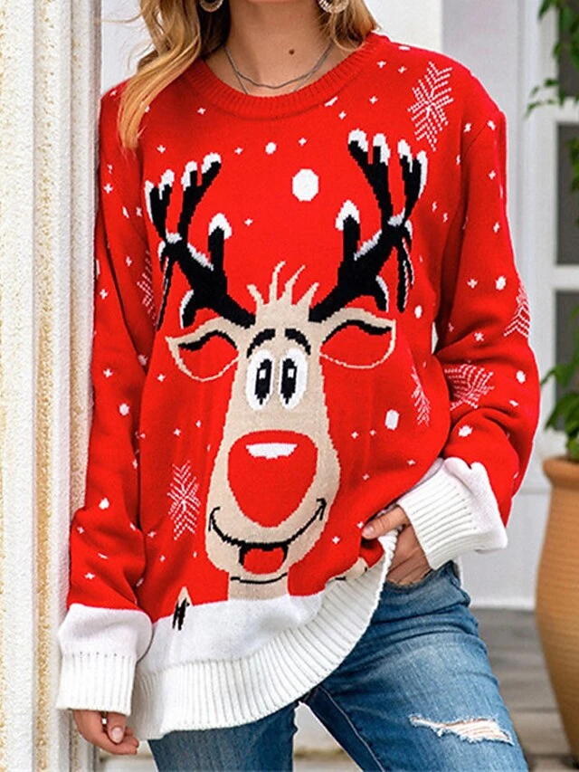 Women’s Ugly Christmas Sweater Pullover Sweater Jumper Crew Neck Ribbed Knit Acrylic Knitted Fall Winter Outdoor Xmas Holiday Stylish Casual Soft Long Sleeve Elk Snowflake Wine Red S M L
