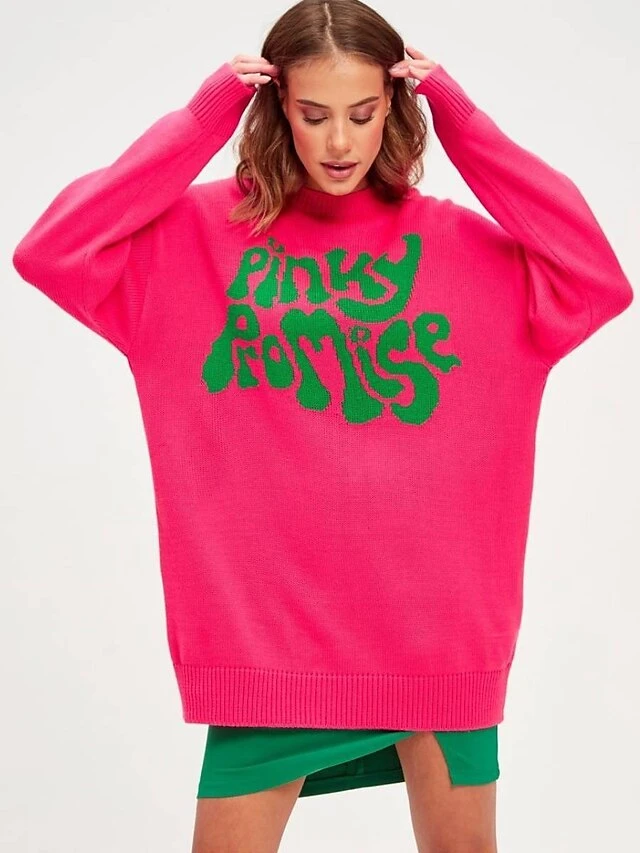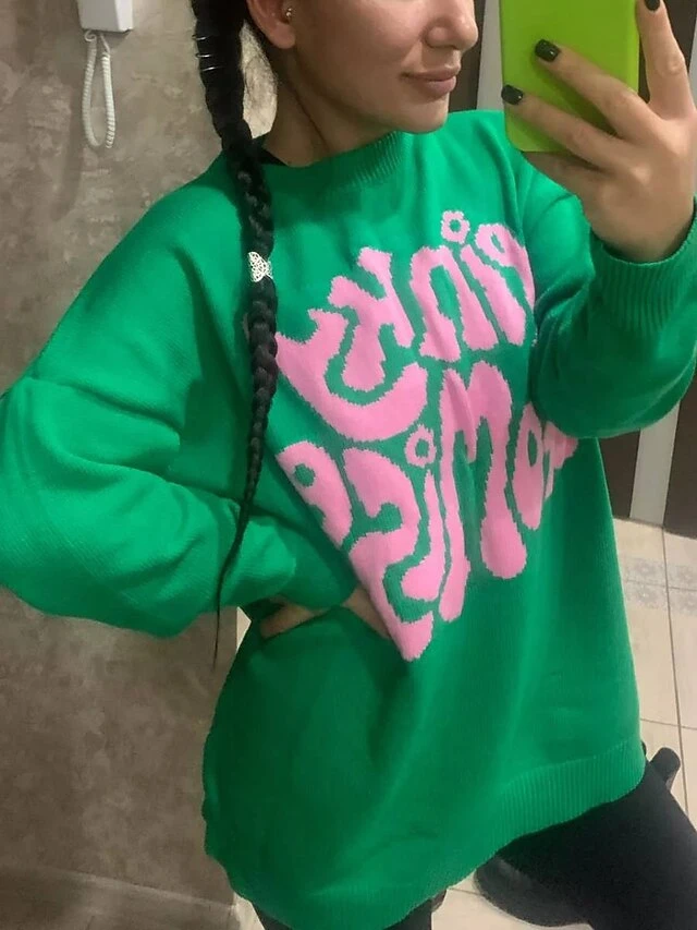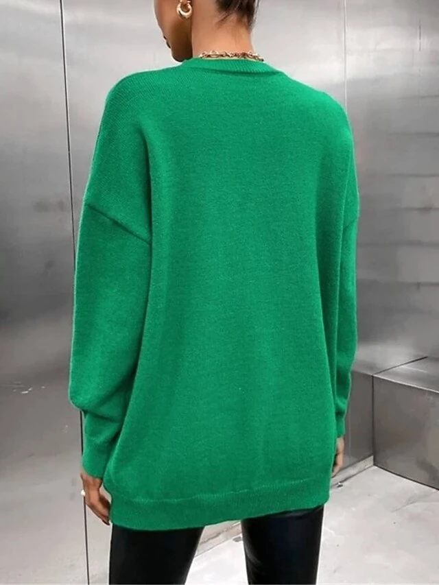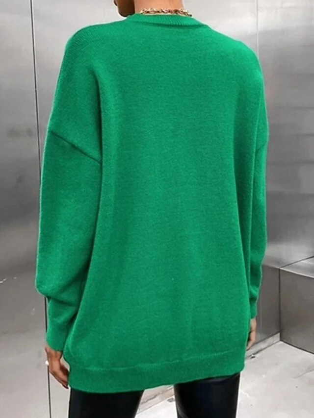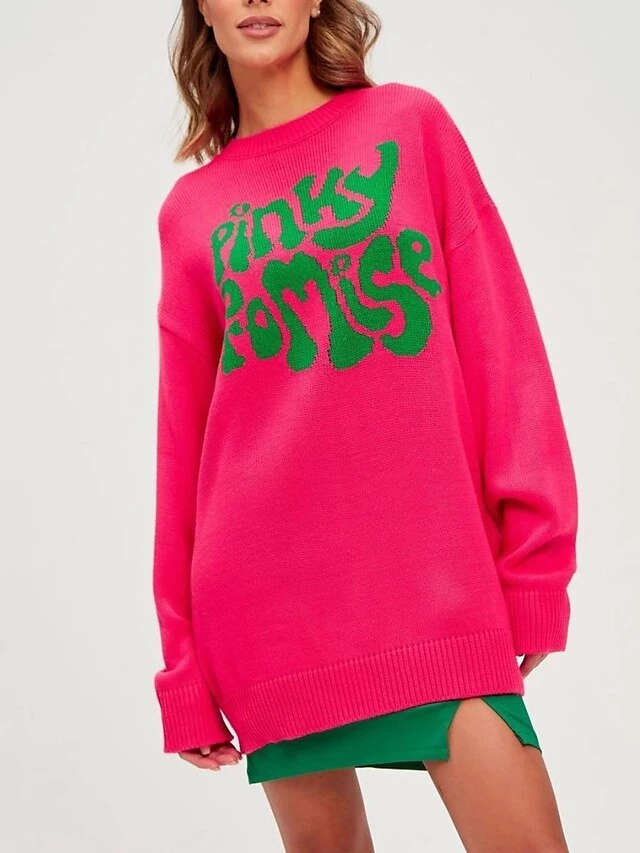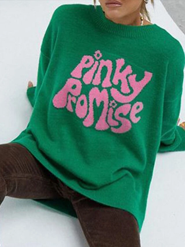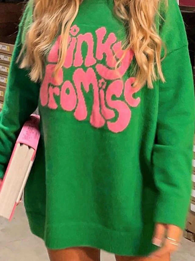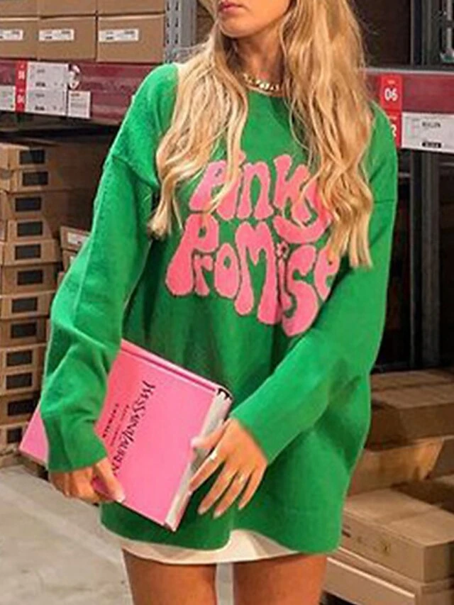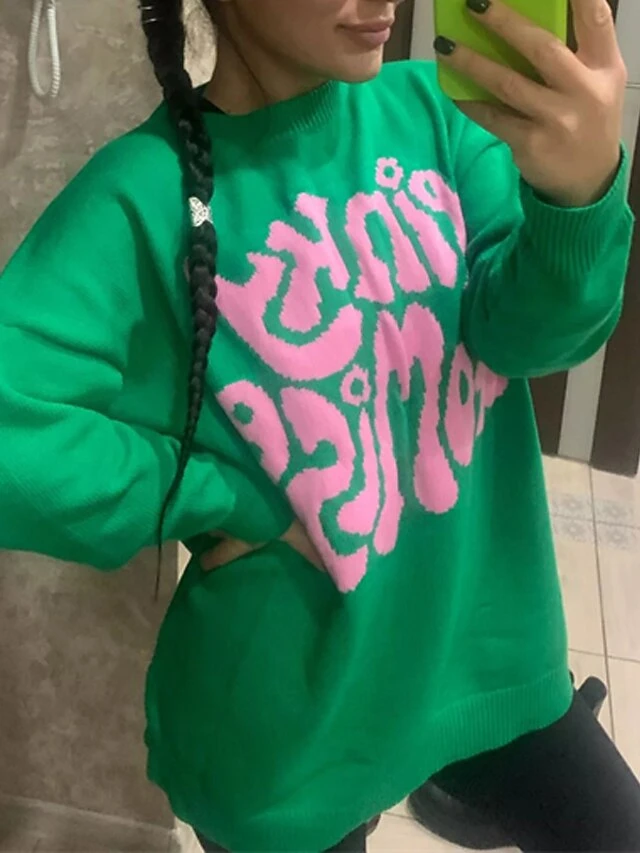 Women’s Ugly Christmas Sweater Pullover Sweater Jumper Crew Neck Ribbed Knit Acrylic Knitted Print Fall Winter Outdoor Home Xmas Stylish Casual Soft Long Sleeve Letter White Red Green S M L