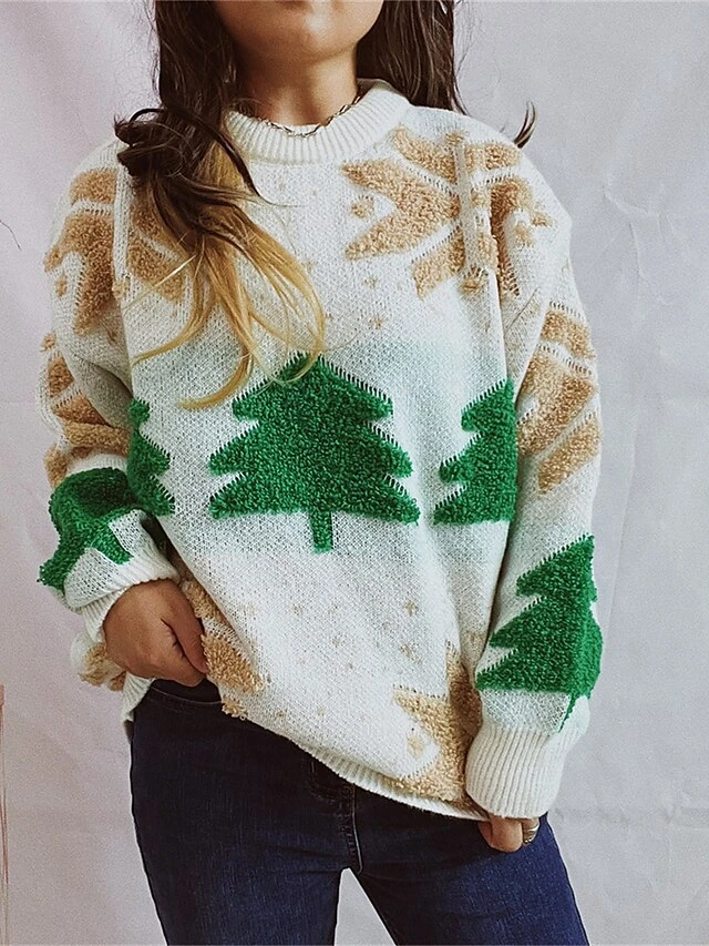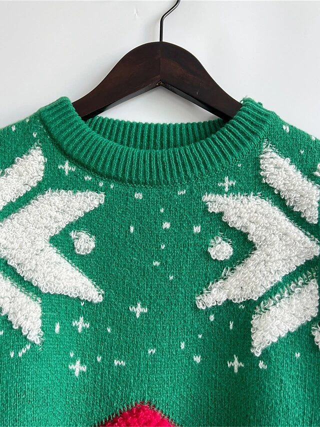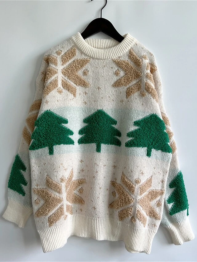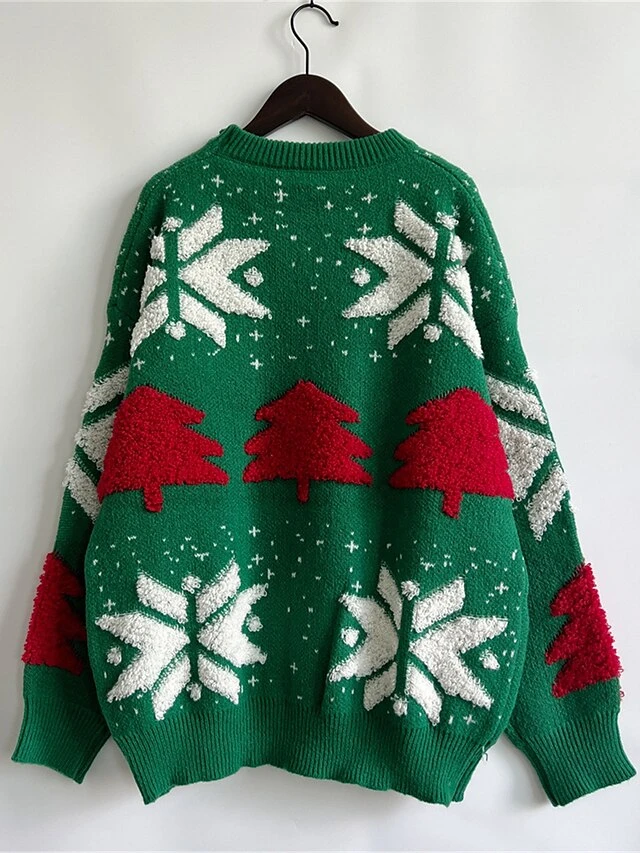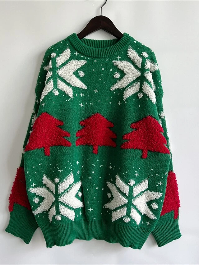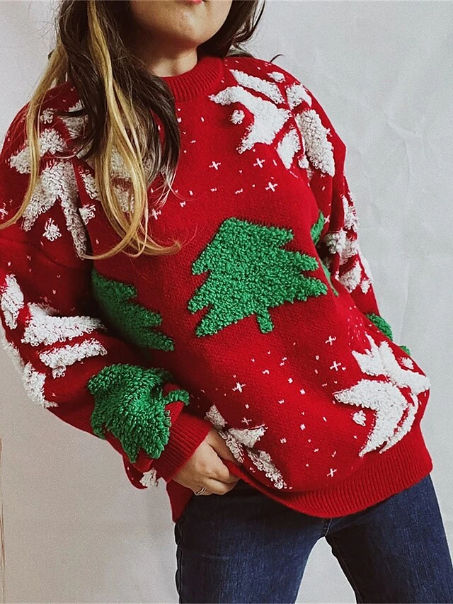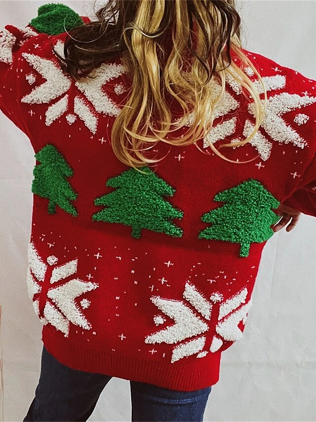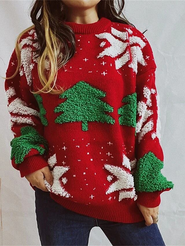 Women’s Ugly Christmas Sweater Pullover Sweater Jumper Crew Neck Ribbed Knit Acrylic Oversized Fall Winter Regular Outdoor Christmas Daily Stylish Casual Soft Long Sleeve Christmas Tree Snowflake Red