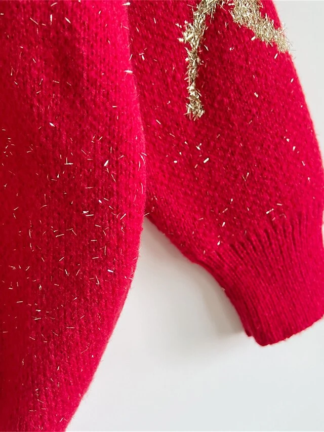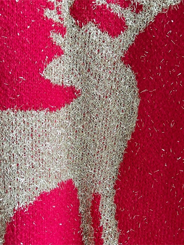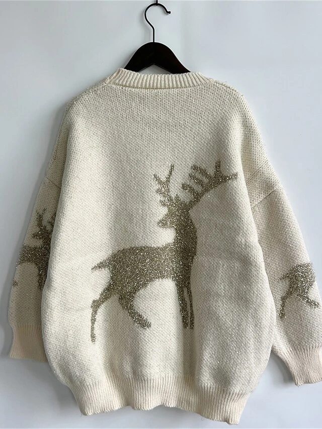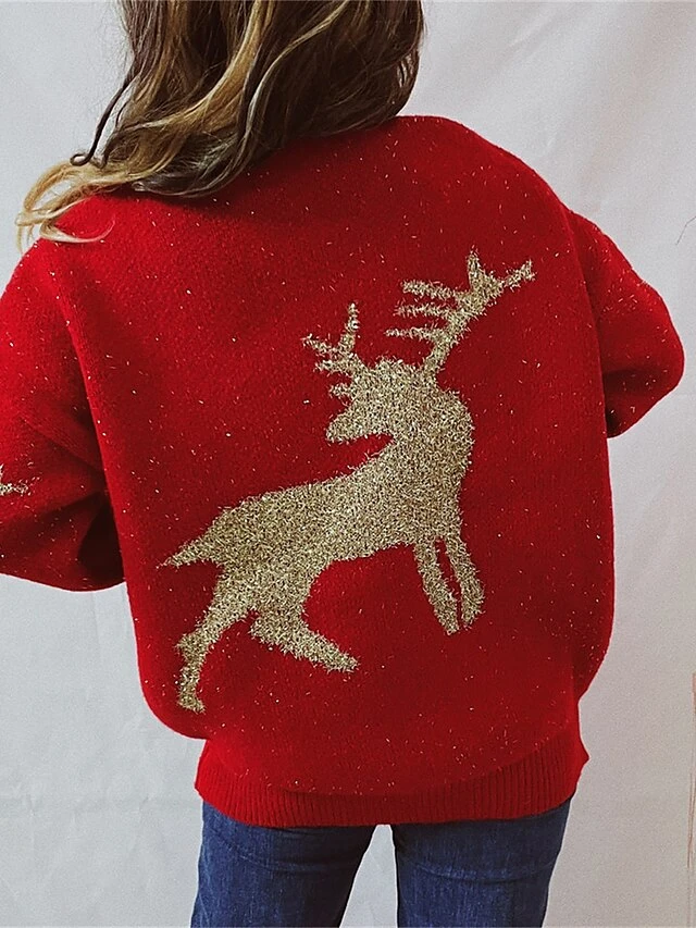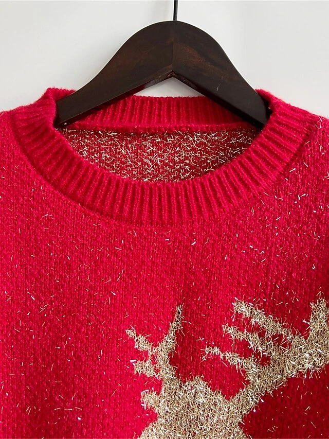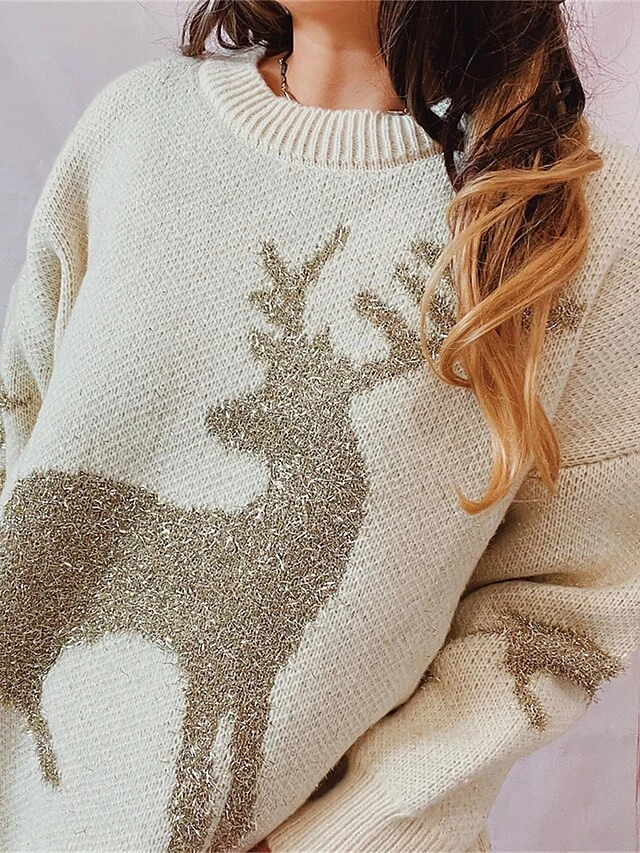 Women’s Ugly Christmas Sweater Pullover Sweater Jumper Crew Neck Ribbed Knit Acrylic Oversized Fall Winter Regular Outdoor Xmas Daily Stylish Casual Soft Long Sleeve Elk Red Beige S M L