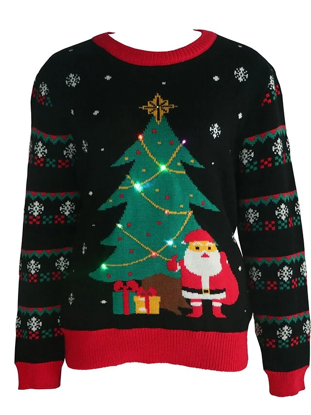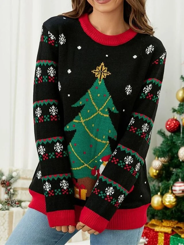 Women’s Ugly Christmas Sweater Pullover Sweater Jumper Crew Neck Ribbed Knit Acrylic Oversized Fall Winter Short Xmas Daily Going Out Stylish Casual Soft Long Sleeve Santa Claus Christmas Tree