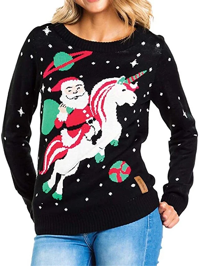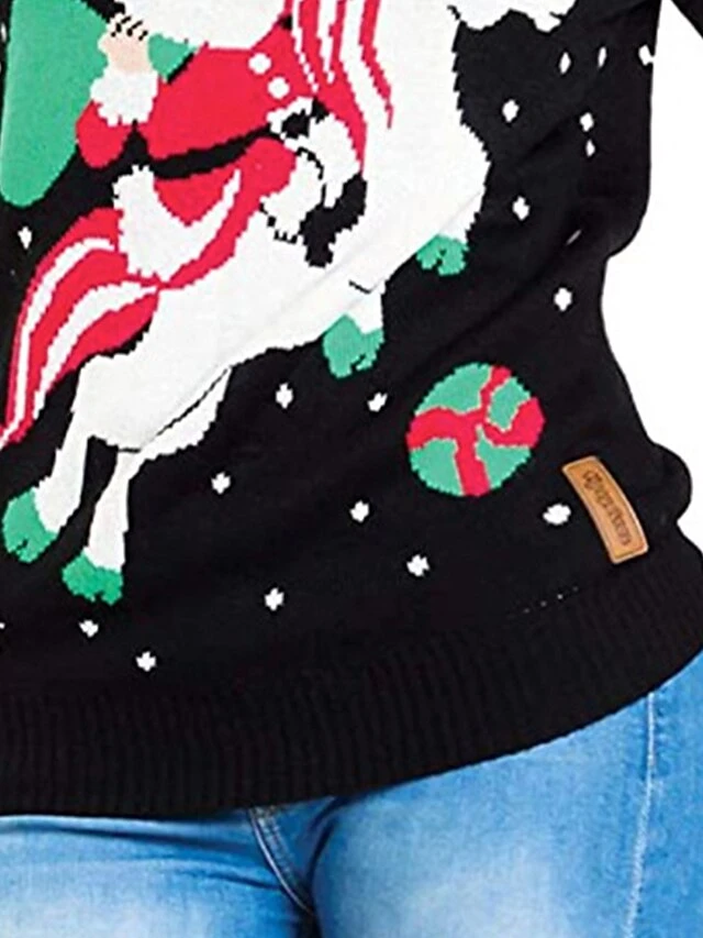 Women’s Ugly Christmas Sweater Pullover Sweater Jumper Crew Neck Ribbed Knit Acrylic Patchwork Fall Winter Regular Outdoor Xmas Daily Stylish Casual Soft Long Sleeve Animal Geometric Santa Claus