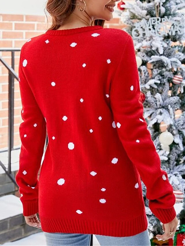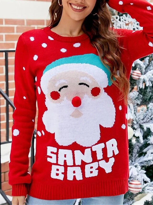 Women’s Ugly Christmas Sweater Pullover Sweater Jumper Crew Neck Ribbed Knit Acrylic Patchwork Fall Winter Regular Xmas Daily Going Out Stylish Casual Soft Long Sleeve Santa Claus Red S M L