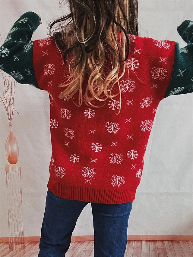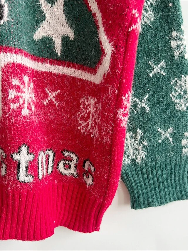 Women’s Ugly Christmas Sweater Pullover Sweater Jumper Crew Neck Ribbed Knit Knit Patchwork Fall Winter Regular Outdoor Xmas Daily Stylish Casual Soft Long Sleeve Color Block Letter Santa Claus