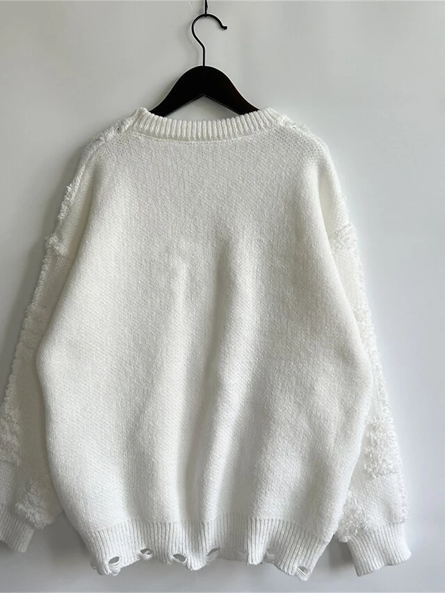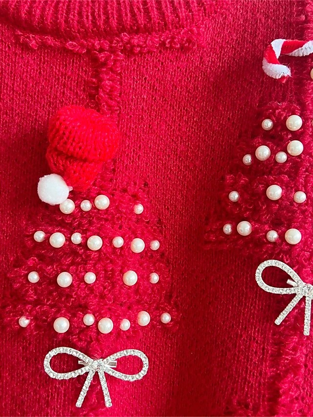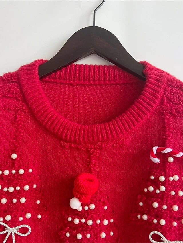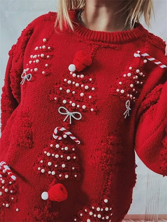 Women’s Ugly Christmas Sweater Pullover Sweater Jumper Crew Neck Ribbed Knit Polyester Hollow Out Oversized Beads Fall Winter Regular Outdoor Christmas Daily Stylish Casual Soft Long Sleeve Christmas