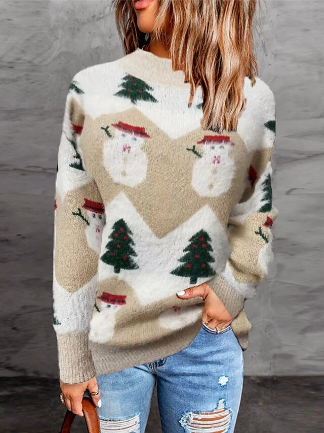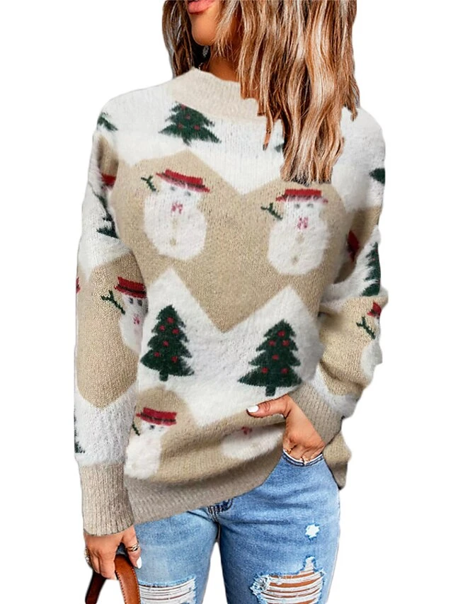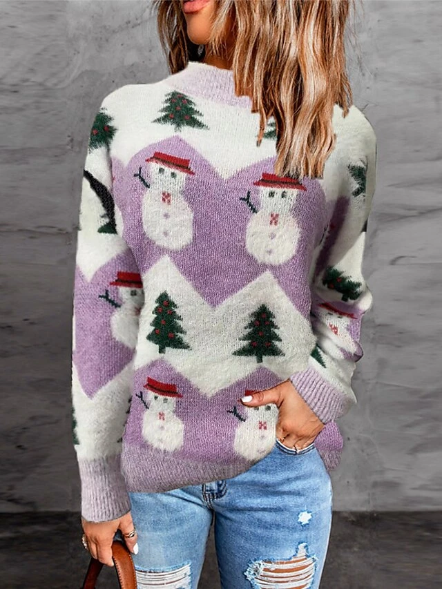 Women’s Ugly Christmas Sweater Pullover Sweater Jumper Crew Neck Ribbed Knit Polyester Knitted Fall Winter Tunic Outdoor Christmas New Year Stylish Casual Soft Long Sleeve Snowman Xmas Tree Pink