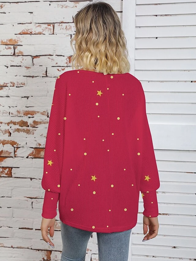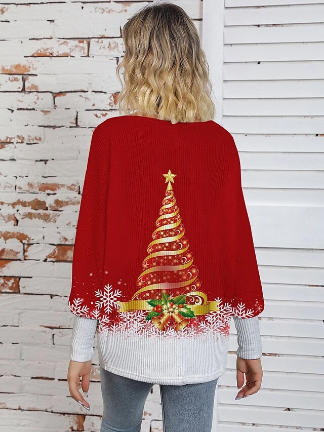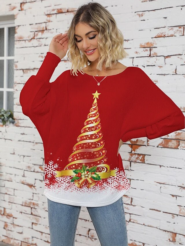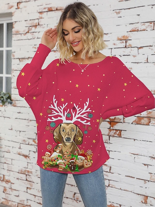 Women’s Ugly Christmas Sweater Pullover Sweater Jumper Crew Neck Ribbed Knit Polyester Knitted Print Fall Winter Regular Outdoor Christmas Holiday Daily Stylish Casual Long Sleeve Animal Christmas