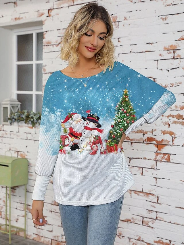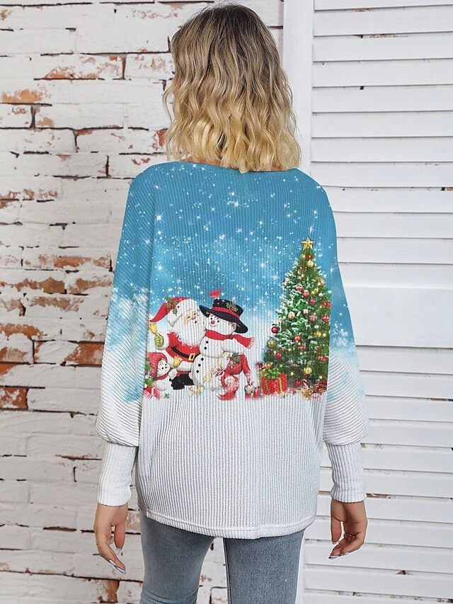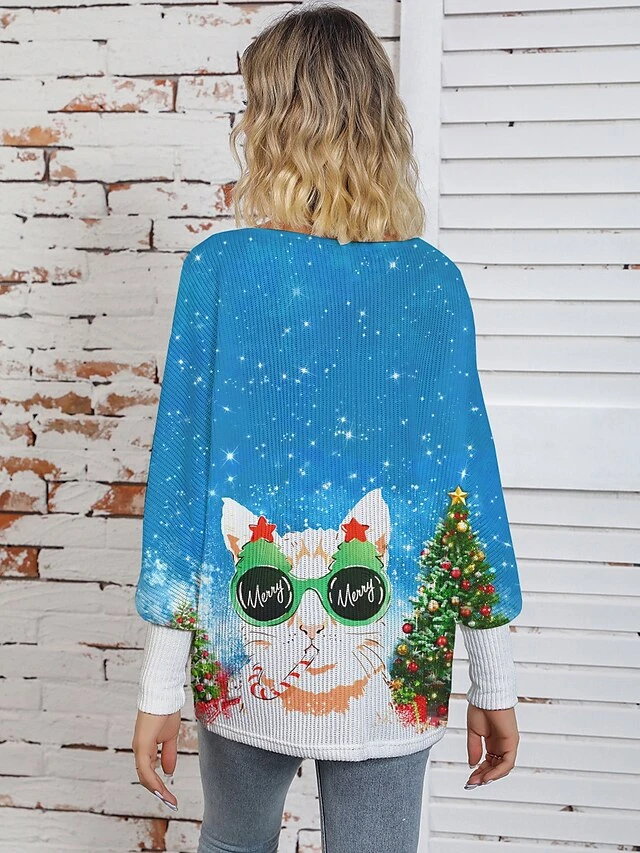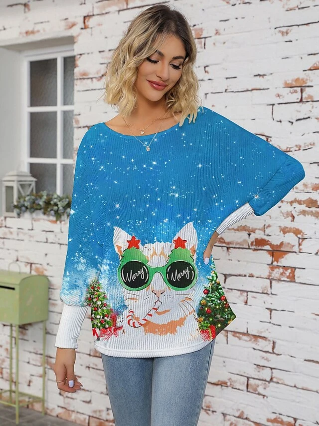 Women’s Ugly Christmas Sweater Pullover Sweater Jumper Crew Neck Ribbed Knit Polyester Knitted Print Fall Winter Regular Outdoor Christmas Holiday Daily Stylish Casual Long Sleeve Animal Santa Claus