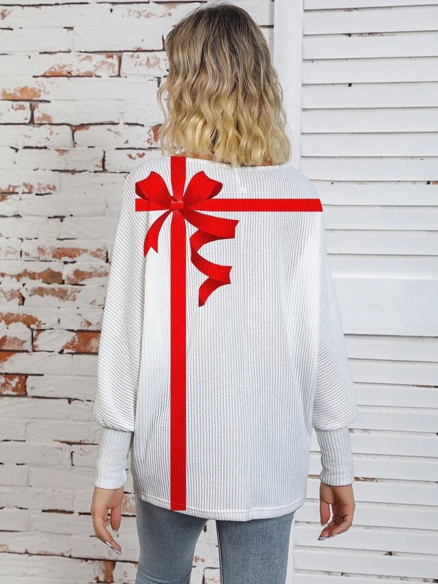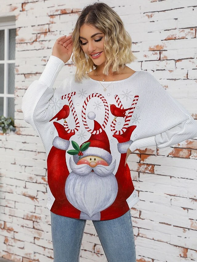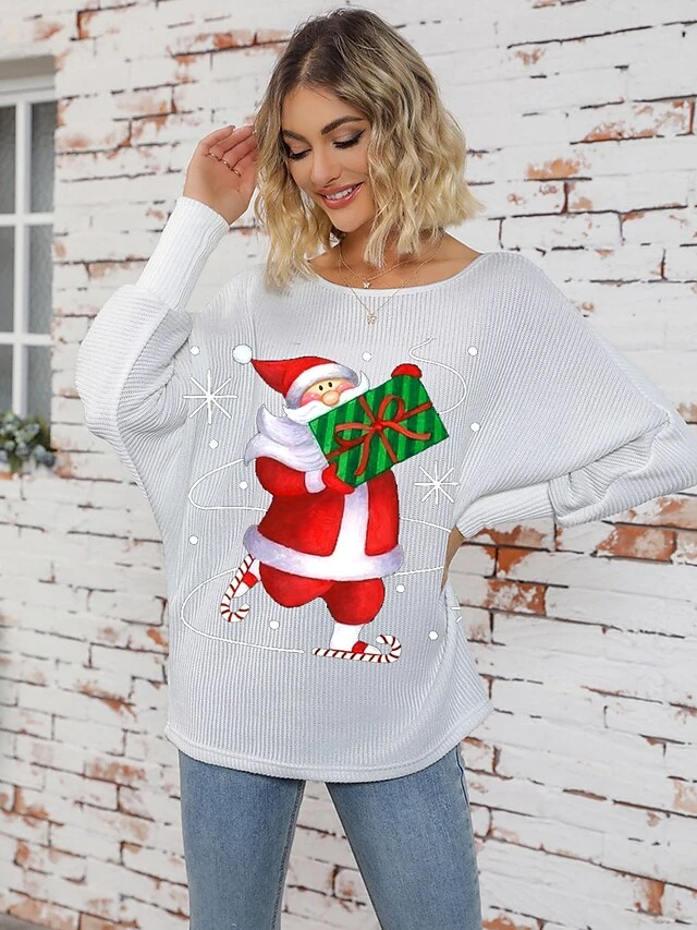 Women’s Ugly Christmas Sweater Pullover Sweater Jumper Crew Neck Ribbed Knit Polyester Knitted Print Fall Winter Regular Outdoor Christmas Holiday Daily Stylish Casual Long Sleeve Letter Santa Claus